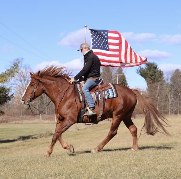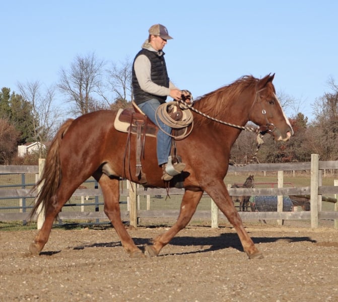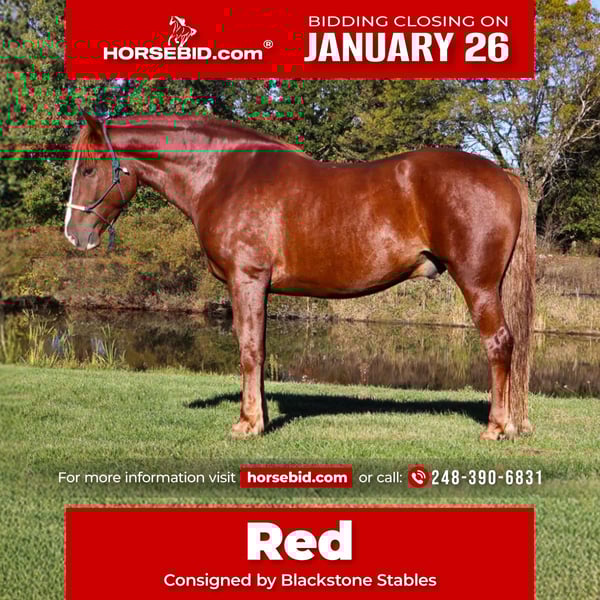 𝐉𝐀𝐍𝐔𝐀𝐑𝐘 ⭐️𝑨𝒍𝒍 𝑺𝒕𝒂𝒓 𝑳𝒊𝒏𝒆𝒖𝒑⭐️ Happening now thru MONDAY | JANUARY 26th - Available EXCLUSIVELY on HorseBid's website! For more details and to register visit: www.Horsebid.com CONSIGNOR CONTACT: Blackstone Stables 248-390-6831 LOCATION: Howell, MI BREED: Draft X REGISTERED: No REGISTERED NAME: Red COLOR: Chestnut HEIGHT: 16.2 AGE: 6 GENDER: Gelding Red is a 6-year-old Draft X gelding. He is an absolute delight not only to ride but also to be around. This boy wants to be your best friend and is always happy to greet you at the pasture gate. He stands a solid 16.2hh. Red is an extremely versatile horse. He will walk, trot, and canter with just a tap of your heel and stops with a simple “whoa.” He’s very light on his feet and soft in your hand. Red is as smooth as a couch, and his gaits are all balanced. He is a substantially built guy who is also very athletic. He has great bone structure and nice, big, solid hooves. He stands well for the farrier. Red has a beautiful face and a pleasant, kind eye. He has a calm yet willing nature. Take him out on the trails, down the road, for a hack out in the field, or for a ride in the arena he is an easygoing guy wherever you take him. Red would make an amazing hunt horse. He is great with kids and adults alike and will make you want to get out and ride. He is the type who can easily carry a bigger rider, as he takes up a lot of leg. Red also jumps. He's been on many hunter paces. He jumps right around. He has a great hunter canter and is delightful to watch go, and even more fun to ride. He stands tied anywhere, for anything. Here’s a truly versatile horse one Grandpa can take on a fox hunt while a teen rider can take him to a show the very next day. He gets along with all horses, ponies, and farm animals.