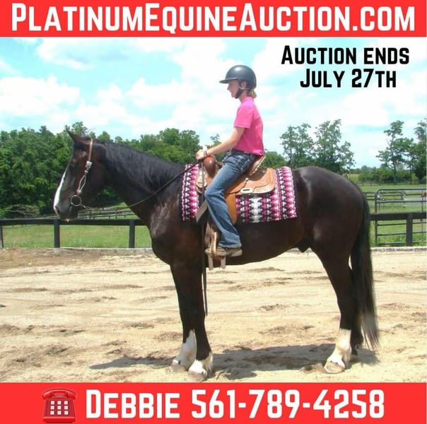 ONLINE AUCTION Place your bids at www.PlatinumEquineAuction.com Starting Bid $3500 Auction ends July 27th 2025 Need a new saddle? Check out White Rock Saddles on our website or Facebook Skyscraper is just as big as he is gentle! He is a very friendly, easy going guy, safe, smart, well trained and he is also easy on the eyes! He is a 5 yr old, draftcross gelding and he is a stout built 16.3HH. Sky has a beautiful walk, trot and canter, he transitions effortlessly and is smooth throughout. He is great in the arena or down the trails. He will cross ditches, creeks, deadfall, up/down steep slopes and he does it all with confidence so that even if the rider isn’t sure what is going on… he knows how to handle himself in order to keep everyone safe. We have jumped him and he shows lots of talent. He can do lessons and is very safe and forgiving. He has done trail obstacles, and he is great and willing for whatever is asked. He can be ridden alone or with others and is the same either way. He has excellent ground manners and is easy to catch. We are located in Lexington, KY. Contact Debbie Grier 561-789-4258 with any questions. ONLINE AUCTION Place your bids at www.PlatinumEquineAuction.com Starting Bid $3500 Auction ends July 27th 2025 Need a new saddle? Check out White Rock Saddles on our website or Facebook