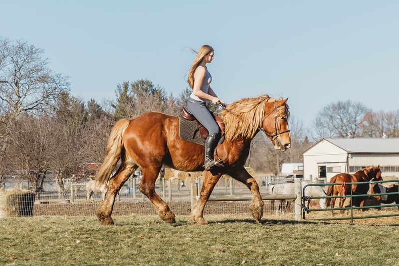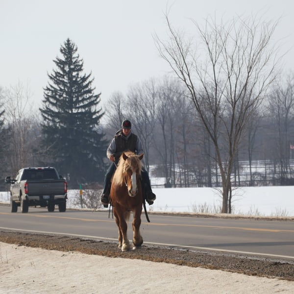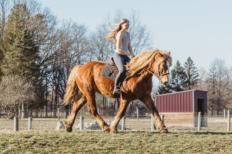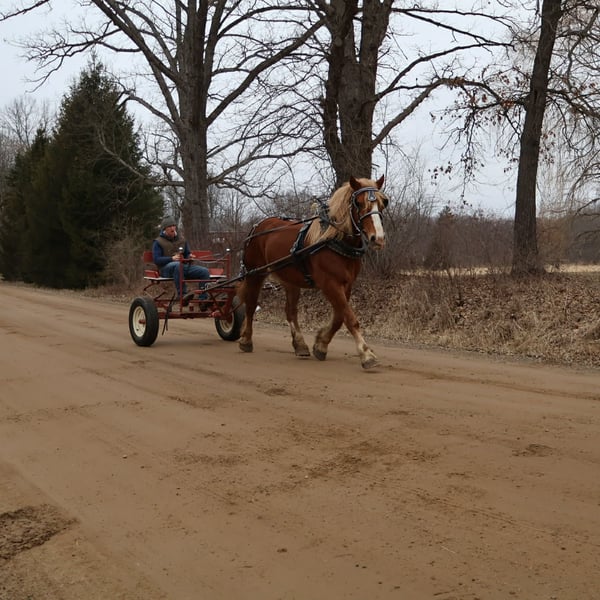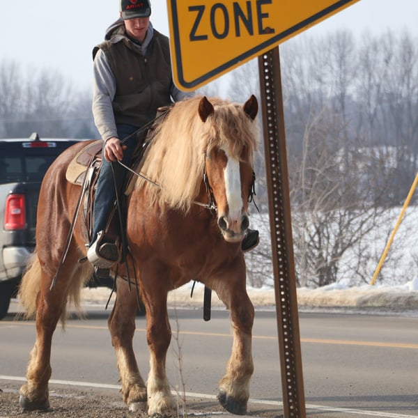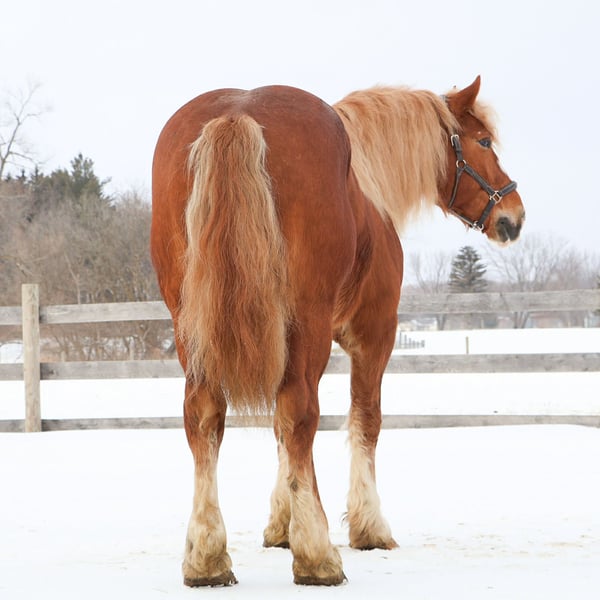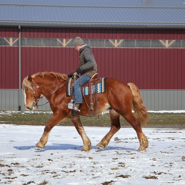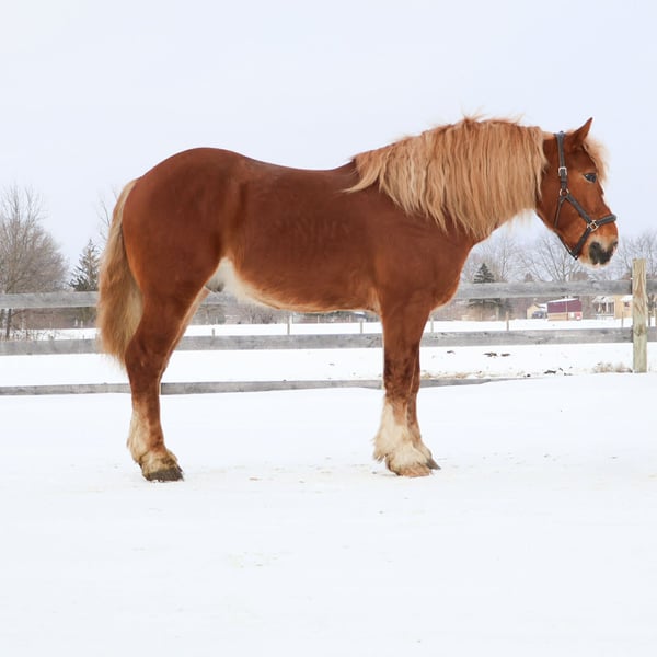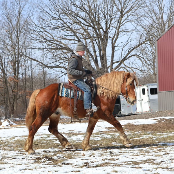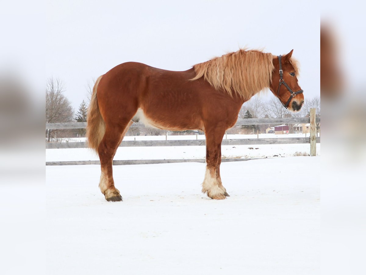 "AVAILABLE ON ONLINE HORSE AUCTION AT www DOT PlatinumEquineAuction DOT com BIDDING OPEN NOW thru SUNDAY | MARCH 29TH! *Final price will be determined on auction site* CONSIGNOR CONTACT INFO: Ellesse Schwartz 248-390-6831 LOCATION: Howell, MI Introducing Prince. He is a stunning chesthnut with the thickest naturally curley flaxen mane and tail you will see. He is a 7 year old Belgian Gypsy cross. Not only is he absolutely stunning this gelding’s conformation, size and build are ideal! He stands just a hair shy of 16.1hh, boasting a lot of bone and substance without being too heavy and still keeping a very clean and athletic build. He also has the kindest face and big doe eyes. Prince is a very gentle soul by nature. Quiet and easy going. He rides both English and western, and absolutely loves the trails and outdoors. He is great in traffic, riding down the roads, through the fields, and woods. He is great in groups, or out on solo rides. He also knows all the basics in the arena, walk and trot off a kids and canters with a little squeeze. Slow and steady is his favorite pace. He side passes to the mounting block and stands like a rock to get on and off of. Prince also carries the flag, drags tires or sleds, and is great with tarps. He is slow and steady in everything you ask him to do! Prince is easy, and uncomplicated to ride and drive. He is extremely well broke in harness, and has been driven to town, on busy roads and back roads. He will work single or double. Prince stands well to harness, hook and for passengers to get on and off the carriage. This horse quickly became one of the favorites in the barn, and had been enjoyed by the entire family from riders 6 yo and up. Whether it be fun arena rides, driving down the road, or out hitting the trails. In the barn Prince is a welcomed addition. He has the best manners. Prince stalls great, greets you in the pasture and will walk as slow as you want while leading him. He is great in the pasture with others. He will stand tied in cross ties, to a trailer or a post. Prince is just a joy to be around and a very easy keeper. He Loads and hauls great and is wonderful in new environments. Prince is the perfect age, with a solid all around start and a whole life ahead of him to go enjoy. He is the very definition of a husband horse or one anyone can hop on and enjoy. Ride him once a month or every day and he stays the same. This horse wants to be your best friend, companion and wants to enjoy all of life’s adventures with you. Prince lives in Howell, MI 48855. Call or text Ellesse Schwartz for more information 248-390-6831
