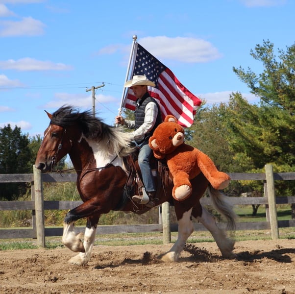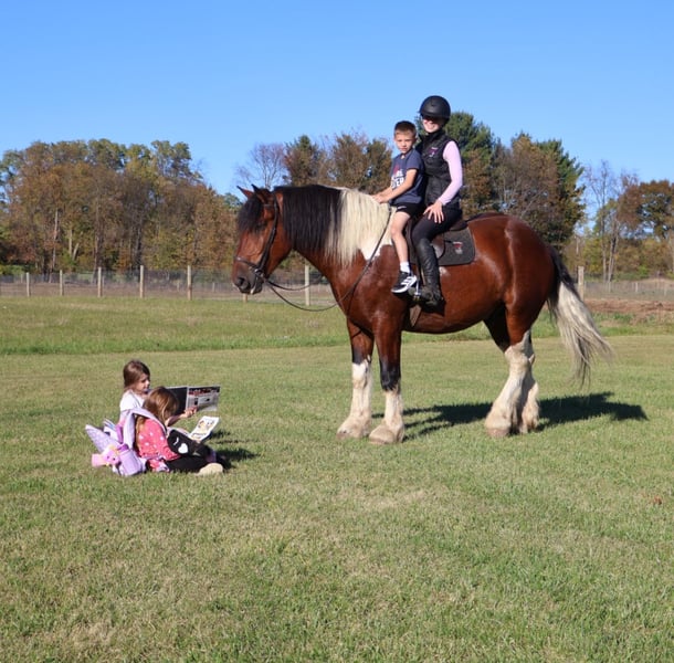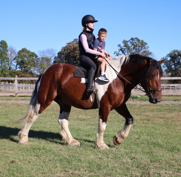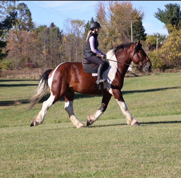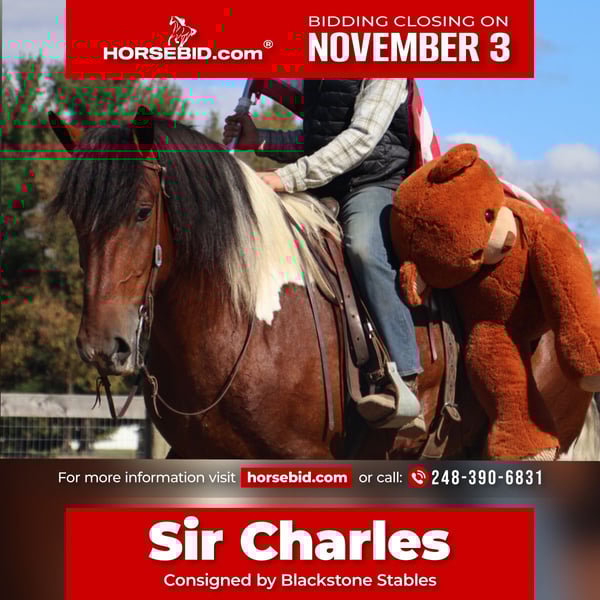 ⚜️𝐓𝐇𝐄 𝐅𝐀𝐋𝐋 𝐇𝐄𝐑𝐈𝐓𝐀𝐆𝐄 𝐂𝐋𝐀𝐒𝐒𝐈𝐂⚜️ Happening now thru MONDAY | NOVEMBER 3rd - Available EXCLUSIVELY on HorseBid's website! For more details and to register visit: www.Horsebid.com CONSIGNOR CONTACT: Blackstone Stables 248-390-6831 LOCATION: Howell, MI BREED: Spotted Draft REGISTERED: No COLOR: Tri Color Paint HEIGHT: 17 AGE: 6 GENDER: Gelding Introducing Sir Charles. This 6 year old 17hh spotted draft gelding has it all. From his captivating personality to his stunning conformation and painted color. Charles lacks nothing. Charles is the type of horse who wants to be your best friend. He plays well with all the others outside and will catch you when you walk to the pasture. Charles is extremely well broke. He walk, trots, canters and stops on a dime. His transitions are flawless both upward and down. Charles steers off seat and leg so well you don’t even need a bridle. He will gladly take a bit, snaffle or shank he’s not fussy or just pull the bridle right off and he steers with all leg ques. He builds you up every ride and makes you want to get on. Charles has loads of experience out on the trails from the mountains of MO to the open fields of MI he’s seen it. Water, deep woods, roads, wildlife no problem. Charles has been ridden in groups of 40 horses. He will take any place you ask in the group and is not one to get worked up. He’s also been out alone. He’s been driven single and double. He has worked in busy city's, in traffic and crowds of people. He stands to harness. He stands at stop signs and he will stand for passengers to get on and off the carriage. He has a great amount of training in the arena as well. He will easily steep into the lope, and can canter small circles on both leads. Charles is very balanced and light on his feet. He’s completed our desensitizing program. Pool noodles, tarps and bridges are all no problem for him. He is a very brave horse. Charles is the horse to teach you the ropes, the one you can depend on and he’s loaded with personality. He is sure to win you over with one glance into his big soft eyes! Charles lives in Howell, MI. Please call or text Ellesse Schwartz at 248-390-6831