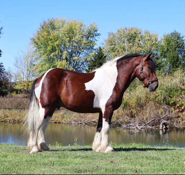 ⚜️DER HERITAGE-CLASSSIC IM HERBST⚜️ Läuft jetzt bis MONTAG | 3. NOVEMBER – Exklusiv auf der Website von HorseBid verfügbar! Für weitere Details und zur Anmeldung besuchen Sie bitte: www.Horsebid.com VERKÄUFERKONTAKT: Blackstone Stables 248-390-6831 STANDORT: Howell, MI RASSE: Spotted Draft Zugelassen: Nein FARBE: Tri-Color Paint HÖHE: 17 hh ALTER: 6 Jahre GESCHLECHT: Wallach Hier kommt Sir Charles. Dieser 6-jährige, 17 hh große Spotted Draft-Wallach hat alles zu bieten. Von seinem faszinierenden Wesen bis hin zu seiner beeindruckenden Konformation und seinem gefleckten Farbkleid – Charles lässt nichts vermissen. Er ist der Typ Pferd, der dein bester Freund sein möchte. Er kommt gut mit allen anderen Pferden im Offenstall zurecht und wird dich schon aus der Weide herbei laufen, wenn du dich nähert. Charles ist äußerst gut ausgebildet. Er geht Schritt, Trab, Galopp und bleibt auf den Punkt stehen. Seine Übergänge sind sowohl nach oben als auch nach unten perfekt. Er lenkt sehr fein über Sitz und Bein, sodass du kaum noch Zügel brauchst. Gerne nimmt er Gebiss, Snaffle oder Shank – er ist nicht wählerisch, oder du kannst die Zügel einfach wegnehmen und er steuert ganz leicht mit den Beinen. Bei jedem Ritt baut er dich auf und macht Lust auf mehr. Charles hat viel Erfahrung auf Trails, von den Bergen in Missouri bis zu den offenen Feldern in Michigan – er hat alles gesehen: Wasser, tiefe Wälder, Straßen, Wildtiere – kein Problem. Er wurde in Gruppen von bis zu 40 Pferden geritten, nimmt jede Position in der Gruppe ein und bleibt ruhig. Auch alleine war er unterwegs. Er wurde einzeln und zu zweit gefahren. Außerdem hat er in der Stadt, im Verkehr und in Menschenmengen gearbeitet. Er steht zum Anspannen bereit, bleibt an Stoppschildern stehen und lässt Passagiere problemlos ein- und aussteigen. Auch im Reitplatz hat er viel gelernt: Er kann leicht in den Longe, kleine Zirkel galoppieren und beide Führungen bewältigen. Charles ist sehr ausgeglichen und leichtfüßig. Er hat unser Desensibilisierungsprogramm erfolgreich absolviert – Pool-Nudeln, Planen und Brücken sind kein Problem für ihn. Er ist ein mutiges Pferd, das dir die Grundlagen beibringt, zuverlässig ist und voller Persönlichkeit steckt. Mit einem Blick in seine großen, weichen Augen wirst du ihn sofort ins Herz schließen! Charles lebt in Howell, MI. Bitte ruf oder schreib Ellesse Schwartz unter 248-390-6831 an.