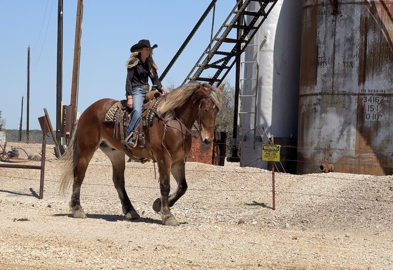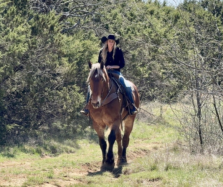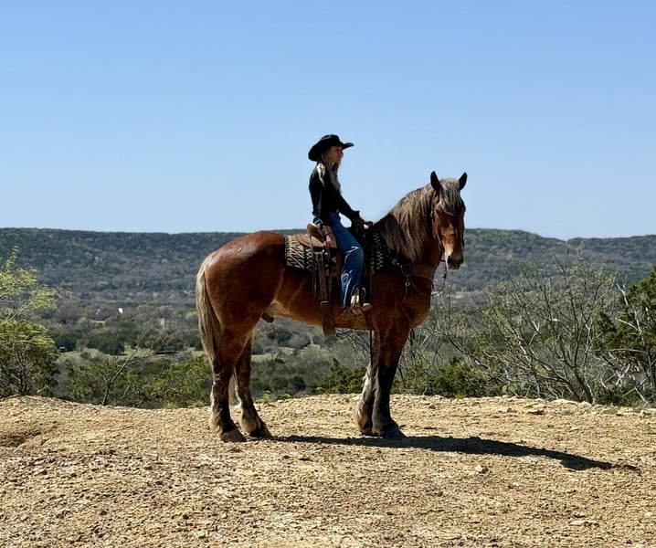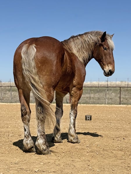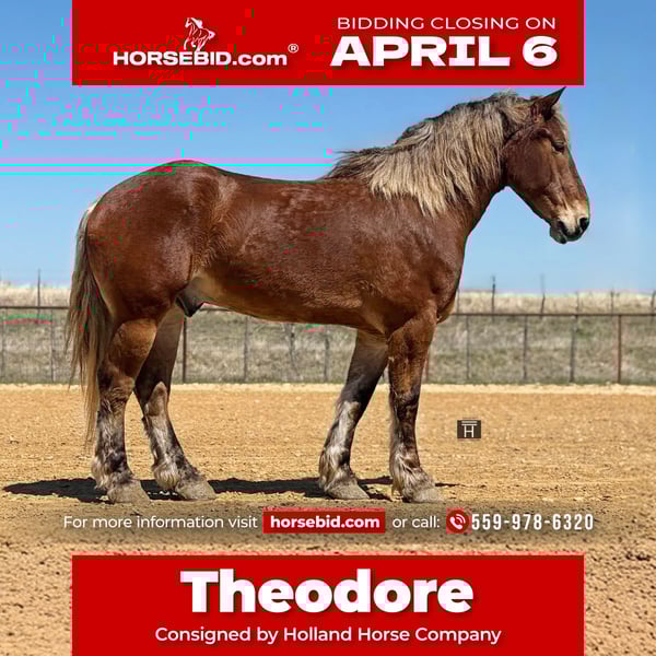 🌟𝑨𝒑𝒓𝒊𝒍 𝐀𝐋𝐋 𝐒𝐓𝐀𝐑 𝐋𝐈𝐍𝐄𝐔𝐏🌟 Happening now thru MONDAY | APRIL 6th - Available EXCLUSIVELY on HorseBid's website! For more details and to register visit: www.Horsebid.com CONSIGNOR CONTACT: Holland Horse Company 559-978-6320 LOCATION: Weatherford, TX BREED: Draft Cross REGISTERED: No COLOR: Silver Bay HEIGHT: 18 AGE: 7 GENDER: Gelding Theodore is a hunk of a gelding standing 18 hands. He is built to perfection and the best cross of calm, cool and collected with some athleticism sprinkled in. He is absolutely safe and gentle enough for any level of rider. Theodore is well versed in driving both single and double. He is broke under English tack and has seen some fences in the arena and cross country obstacles in the field. He is uncomplicated and will go over anything you point him at. Stands for mounting and dismounting. Theodore rides one handed in a bridle or two handed in a snaffle bit. He is responsive enough for light hands and legs while not being overly sensitive to beginner type hands and legs. He will lope with a kiss and stop with a woah. Drop your reins anywhere and he will stand like a gentleman until asked to go again. He could care less where his buddies are and is confident and independent. We have also yet to find anything Theodore has spooked at or refused. On the ground Theodore is as affectionate and as friendly as they get. He will meet you at the gate, lower his head for haltering, bridling and unbridling. He is great with his feet, stands tied, loads/unloads and hauls like a dream. We have yet to find a vice in this guy and cannot say enough good things about him. Theodore is sound, straight and clean legged. FMI call/text Chanel with Holland Horse Company 559-978-6320. We are happy to answer questions and help with shipping arrangements.
