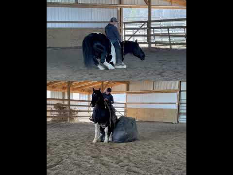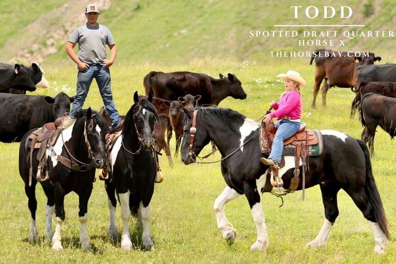 Todd and Tucker are a dynamic duo that you sure do not run across every day! These boys are so very special! They are Spotted Draft Horse/Quarter Horse crossbreds and are full brothers. Todd is 8 years old, and Tucker is 9. They were raised by some good Amish friends of ours until we purchased them a year and a half ago. These two have extensive experience in almost everything you could imagine. From being phenomenal driving horses, to having the smoothest one-step lope, to being one of the best hands around the ranch, to even being trick horses, Todd and Tucker are truly the best team of horses we have ever owned. They are 100 percent safe, sound, skilled, and experienced horses with the sweetest, most pleasant, and willing-to-please attitude. As Spotted Draft Horse/ Quarter Horse crossbreds, Todd and Tucker have all of the best qualities of each breed. Their size, color, build, and disposition come from the draft side of them, with their agility, intelligence, and versatility being attributed to the quarter horse in them. Todd and Tucker stand 16 hands and are built wonderfully- they have big feet and bones and are thickly made with a great conformation. On the ground, Todd and Tucker are complete gentlemen. Our little girl who is only 8 can handle either or both of them together with ease, confidently. Even with their size, she knows she can trust them. They are respectful of your space, they stand tied patiently, stand in the wagon patiently, and with the extensive liberty work they’ve had, they will even follow you around at the command to come. In the saddle, these boys are a dream ride. They both have a one-hand neck rein, have a super smooth one-step lope, a big stop, and will back up and turn around in a circle like a quarter horse. They take their correct leads both ways and respond to leg pressure. They are completely experienced in both indoor and outdoor arenas. We’ve also ridden them on countless miles of trails. It doesn’t matter what type of terrain or what kind of challenge they face- they will take you where you want to go. Our entire family has enjoyed trail riding with these guys! From mud to rocks to sliding over steep hills to deep water- they’ve done it all! They are safe and sure-footed, getting you where you need to go. Todd and Tucker are also amazing driving horses. I could not count the miles they have both driven and worked together as a team. They know their job, do it well, and look AMAZING while doing it. They are very classy and move with elegance. They sure do turn heads! They are also completely traffic-safe. We’ve driven them to town, to and through our cattle farm that’s up the road, in parades, and even used them in a live drive-thru nativity scene to give people wagon rides! From the tiniest babies to the oldest grandpas, Todd and Tucker safely gave them rides in the wagon! They are surely a trusted team! Todd and Tucker are also trick horses. They have both been trained to lie down and sit up! They are both super intelligent animals. They will also side-pass to a mounting block or any other mounting point you choose. These brothers have also been a huge help around the farm. We have used them to rope wild cattle, move, check, and sort cattle, and check fences almost daily. We’ve even taken them to a large-scale cattle roundup, where they helped catch, sort, and work over 300 head of cattle in a couple of days! They are also very useful for opening and closing gates, dragging items around, and moving fences or gates as needed. Our Amish friends also used them to feed hay and run equipment. We’ve seen his 3-4-year-old son drive Tucker with a roll of hay on the wagon while his father opened and closed the gate for him. Todd and Tucker are also very familiar with the tarp, whip, and gun. They’ve seen it all many, many times and pay it no mind at all. They’re both great at loading and hauling, love a bath, and stand well for the farrier. They get along well with each other and other horses. They are super friendly to everyone they meet. Each time we take them out in a crowd, countless people come to pet them. They enjoy the love! They perform well in the stall and in the pasture. They are easy to catch and will respond every time you call. They are also great with pets and livestock, including dogs, cats, and goats that run in and around the barn with them. Both of these horses are truly safe, gentle, and easy to get along with. They aren’t exactly the same, but with the wonderful training they’ve had, they are pretty close! Aside from minor differences in appearance, the only difference between these two is that Todd is laid back, and Tucker is extremely laid back. Tucker is slightly lazier than Todd, whereas Todd is slightly quicker to respond. Honestly, that’s the only difference. Our entire family has ridden and enjoyed both of these boys, even our little girl. She has even set up jumps and jumped them! They are such well-trained, versatile animals that are up for whatever task you ask of them! Their potential is unlimited! They could excel in the western, english or driving world! We are offering Todd and Tucker for purchase separately or as a team. There will be 2 separate auctions, one for Tucker and one for Todd. If you wish to purchase them as a team, make sure to win the bid on each auction! Please feel free to call or text us anytime! We would love to chat with you about these boys or set up a time for you to come and visit them! We can also arrange shipping anywhere in the US. Take the time to watch our full YouTube video to get a glimpse of what life is like with Todd and Tucker.