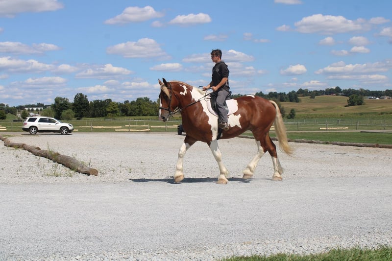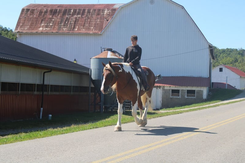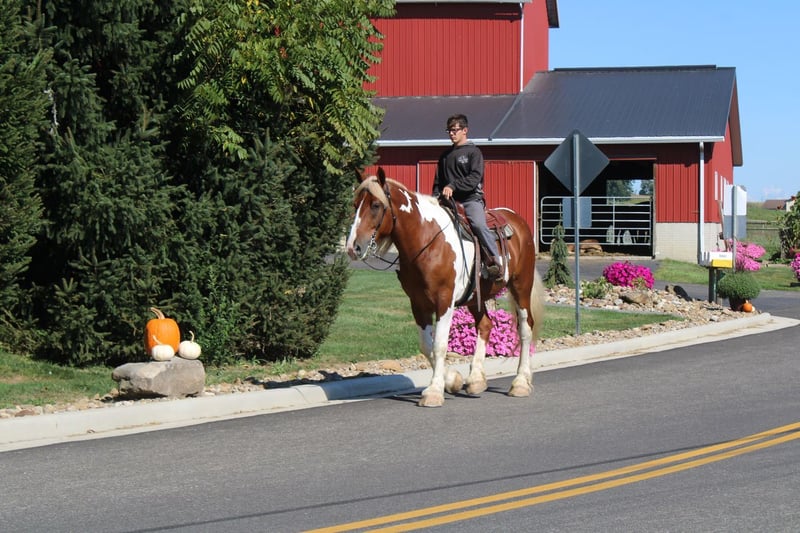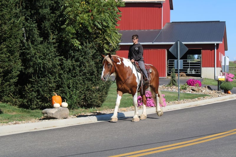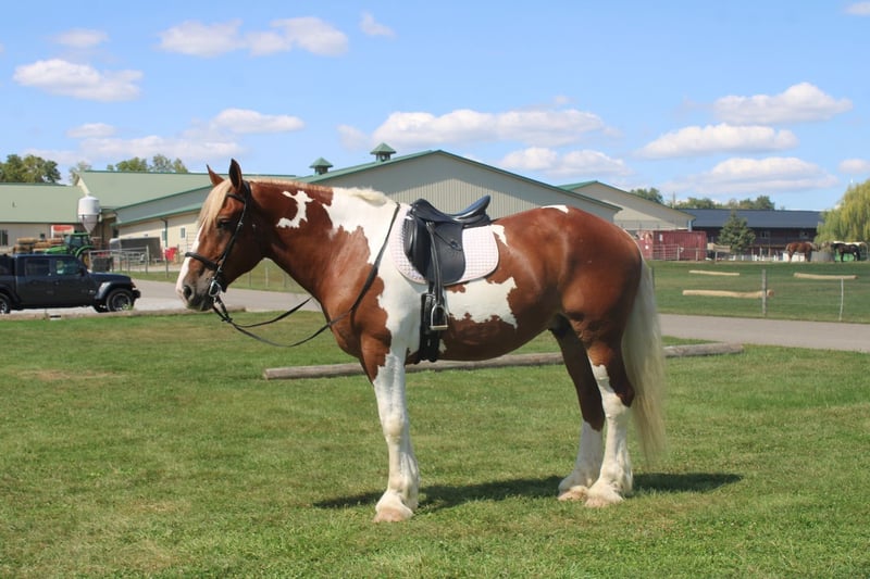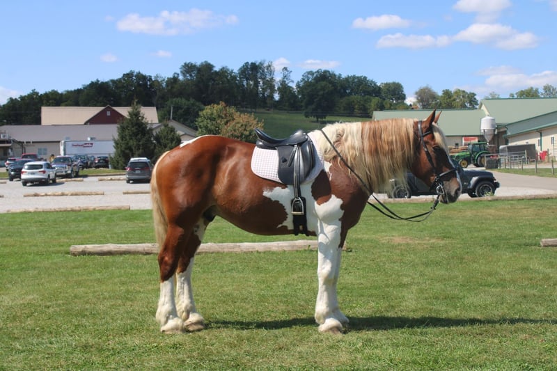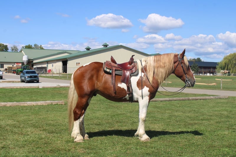 🍁𝒕𝒉𝒆 𝐅𝐀𝐋𝐋 𝑺𝒑𝒆𝒄𝒕𝒂𝒄𝒖𝒍𝒂𝒓🍁 Happening now thru MONDAY | SEPTEMBER 22nd - Available EXCLUSIVELY on HorseBid's website! For more details and to register visit: www.Horsebid.com CONSIGNOR CONTACT: Hershbergers Farm 330-600-0197 LOCATION: Millersburg, OH BREED: Spotted Draft REGISTERED: No COLOR: Red and White HEIGHT: 17.3 AGE: 7 GENDER: Gelding Hershey's Hudson is a fancy Spotted Draft gelding! Hudson is that hard to find color and size so be sure to check him out!! Hudson has been on lots of trail rides and loves to go through water. He has also been out on the busy highway and doesn't mind the traffic. He has been ridden English and Western has a nice collected lope for a big Draft. He stands nice to mount and tack up. Hudson has absolutely no buck in him but might be just a little too forward for a complete beginner. But if you have any knowledge with horses you will love to ride him. Here is a beautiful Spotted Draft!! To learn more about Hudson call or text John @ 330-600-0197.