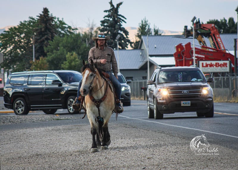 𝕄ℂℕ𝔸𝔹𝔹 𝕃𝕀𝕍𝔼𝕊𝕋𝕆ℂ𝕂's 🍂𝟑𝟎𝟕 𝐅𝐀𝐋𝐋 𝑺𝒑𝒆𝒄𝒊𝒂𝒍🍂 Happening now thru MONDAY | SEPTEMBER 15th - Available EXCLUSIVELY on HorseBid's website! For more details and to register visit: www.Horsebid.com CONSIGNOR CONTACT: McNabb Livestock LLC 307-250-0900 LOCATION: Cody, Wy BREED: Draft X REGISTERED: No COLOR: Buckskin HEIGHT: 15.1 AGE: 9 GENDER: Gelding Dan is one unique horse, he is such a cool color with that blond buckskin color. He is a Belgian X who is thick made excellent bone structure but is a nice height at 15.1 hands tall. He has that typically gentle, easy going personally of the draft horse. He is broke to drive both single and double. He also rides around very nice, he lopes good circles, knows his leads, has a good stop, and turn around. Dan is super smooth to ride. He has an easy rocking chair lope and very smooth trot. Dan is soft in the bride and rides off your legs. Anyone can ride or drive him. If you’re looking for that beginner horse to learn to ride or drive he your guy. He is easy to catch, hook by yourself. He stands quiet and patient to harness or saddle. My kids both drive and ride Dan and we don’t worry one bit about them being around him. We drive him with Tucker and as a team they are just as easy to handle and quiet natured. They both will ride or drive independently, not buddy sour. You can leave one standing tied or in the corral and take the other one out for a ride or drive and they both are happy. We are selling them as choice so you can buy either one or both of them. Out on the trial Dan is happy to just take a leisurely stroll anywhere you want to go. He’s seen miles in the mountains tail riding. We’ve used him around the ranch and he’s very willing to do anything you ask. He is also taught to lay down making him easy for anyone to get on. He has had a basic PPE, up to date on worming, dental and farrier. We welcome you to do your own PPE and to come to the ranch a to meet Dan. We also are glad to help arrange transportation. We will hold the horses at no charge for a reasonable amount of time to get hauling arranged. For more information call 307-250-0900.
