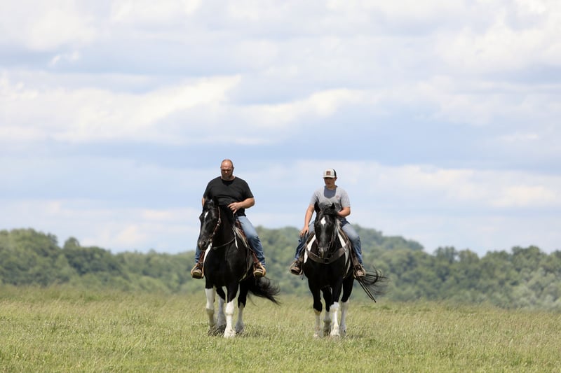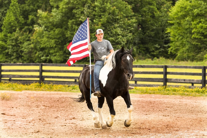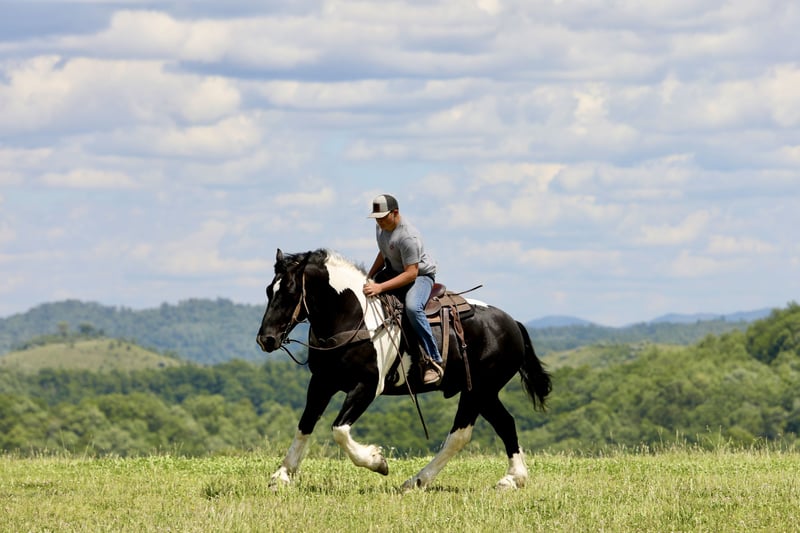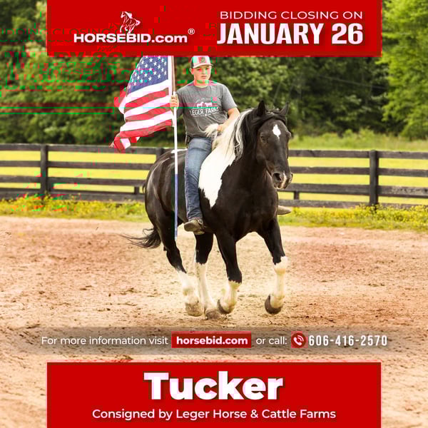 𝐉𝐀𝐍𝐔𝐀𝐑𝐘 ⭐️𝑨𝒍𝒍 𝑺𝒕𝒂𝒓 𝑳𝒊𝒏𝒆𝒖𝒑⭐️ Happening now thru MONDAY | JANUARY 26th - Available EXCLUSIVELY on HorseBid's website! For more details and to register visit: www.Horsebid.com CONSIGNOR CONTACT: Leger Horse & Cattle Farms 606-416-2570 LOCATION: Crab Orchard, KY BREED: Spotted Draft/Quarter Horse Crossbred REGISTERED: No REGISTERED NAME: Tucker COLOR: Black and White HEIGHT: 16 AGE: 9 GENDER: Gelding Todd and Tucker are a dynamic duo that you sure do not run across every day! These boys are so very special! They are Spotted Draft Horse/Quarter Horse crossbreds and are full brothers. Todd is 8 years old and Tucker is 9. They were raised by some good Amish friends of ours until we purchased them a year and a half ago. These two have endless experience in just about everything you could imagine. From being phenomenal driving horses, to having the smoothest one-step lope, to being one of the best hands around the ranch, to even being trick horses- Todd and Tucker are truly the best team of horses we have ever owned. They are 100 percent safe, sound, skilled and experienced horses with the sweetest, most pleasant, willing to please attitude. As Spotted Draft Horse/ Quarter Horse crossbreds, Todd and Tucker have all of the best qualities of each breed. Their size, color, build and disposition come from the draft side of them, with their agility, intelligence and versatility being attributed to the quarter horse in them. Todd and Tucker stand 16 hands and are built wonderfully- they have a big foot and bone, and are thick made with a great conformation. On the ground, Todd and Tucker are complete gentleman. Our little girl who is only 8 can handle either or both of them together with ease, confidently. Even with their size, she knows she can trust them. They are respectful of your space, they stand tied patiently, stand in the wagon patiently and with the extensive liberty work they’ve had, they will even follow you around at the command to come. In the saddle, these boys are a dream ride. They both one-hand neck rein, have a super smooth one-step lope, a big stop and will back up and turn around in a circle like a quarter horse. They take their correct leads both ways and respond to leg pressure. They are completely experienced in both the indoor and outdoor arenas. We’ve also ridden them on countless miles of trails. It doesn’t matter what type of terrain, or what kind of challenge they face- they will take you where you want to go. Our entire family has enjoyed trail riding these guys! From mud to rocks to sliding over steep hills to deep water- they’ve done it all! They are safe and surefooted to get you where you need to go. Todd and Tucker are also amazing driving horses. I could not count the miles they have been driven and worked as a team. They know their job and do it well and look AMAZING while doing it. They are so classy and they move with elegance. They sure do turn heads! They are completely traffic safe as well. We’ve driven them to town, to and through our cattle farm that’s up the road, in parades and even used them in a live drive-thru nativity scene to give people wagon rides! From the tiniest babies to the oldest grandpas, Todd and Tucker safely gave them rides in the wagon! They are surely a trusted team! Todd and Tucker are also trick horses. They have both been trained to lay down and sit up! They are both super intelligent animals. They will also side pass to a mounting block or whatever you choose to mount from. These brothers have also been a huge help around the farm. We have used them to rope wild cattle, move, check and sort cattle, and check fences almost daily. We’ve even taken them to a large scale cattle round up where they helped catch, sort and work over 300 head of cattle over a couple days time! They are also very handy when it comes to opening and closing gates, dragging things around, and moving fences or gates when the need arises. Our Amish friends also used them to feed hay and run equipment. We’ve seen for ourselves his 3-4 year old son drive Tucker with a roll of hay on the wagon while his daddy opened and shut the gate for him. Todd and Tucker are also very familiar with the tarp, whip, and gun. They’ve seen it all many, many times and pay it no mind at all. They’re both great with loading and hauling, they love a bath and stand great for the farrier. They get along well with each other and other horses. They are super friendly to every one they meet. Each time we take them in a crowd, there are countless people who come and pet them. They enjoy the love! They are great in the stall and in the pasture as well. They are easy to catch and will come every time you call for them. They are also great with pets and other livestock as well have dogs, cats and goats that run in and around the barn with them. Both of these horses are truly safe, gentle and easy to get along with. They aren’t exactly the same, but with the wonderful training they’ve had, they are pretty close! Besides some minor differences in their looks, the only thing different about these two is that Todd is laid back and Tucker is SUPER laid back. Tucker is just a touch more lazier than Todd, whereas Todd is just a little quicker to respond. Honestly, that’s the only difference. Our entire family has ridden and enjoyed both of these boys, even our little girl. She has even set up jumps and jumped them! They are such well-trained, versatile animals that are up for whatever task you ask of them! Their potential is unlimited! They could excel in the western, english or driving world! We are offering Todd and Tucker to be purchased separately, or as a team. There will be 2 separate auctions, one for Tucker and one for Todd. If you wish to purchase them as a team, make sure to win the bid on each auction! Please feel free to call or text us, anytime! We would love to chat with you about these boys or set