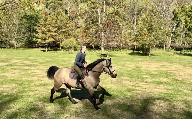 VERFÜGBAR IM ONLINE-PFERDE-AUKTION unter www.MagicHorseAuction.com GEBOTE sind jetzt geöffnet und laufen bis Dienstag, 11. November! – Sofortkauf möglich! *Der endgültige Preis wird auf der Auktionsseite festgelegt* VERKÄUFERKONTAKT: Juli Hubik, 0171-875-2061 STANDORT: Gap, PA Lernen Sie ✨Bennett✨ kennen, einen 9-jährigen, 1,52 m großen, Percheron/Brabant/QH-Mix-Geländerwallach. Dieser Kerl hat die schönste Fellfarbe und eine Mähne, die für Tage beeindruckt! Er ist kräftig gebaut, robust und für die Dauer ausgelegt. Er wäre der ideale Begleiter für Gruppentrainings im Gelände oder um Ihren zuverlässigen Partner fürs Gelände zu sein. Er ist entspannt, liebt es draußen zu sein, und trägt jeden, den Sie auf ihn setzen, problemlos durch die Natur. Er hat viel Erfahrung, ein freundliches Wesen am Boden und vorbildliche Manieren. Bennett reitet sowohl Western als auch Englisch und hat bereits eine Vielzahl verschiedener Reiter getragen. Er ist groß und stabil genug, um auch schwerere Reiter zu tragen, und lässt sich nicht aus der Ruhe bringen, wenn mal etwas schiefgeht. Er ist schon in den Bergen unterwegs gewesen, durch Bäche und Flüsse, über Brücken und Loghindernisse – er hat fast alles gesehen, was es gibt. Er ist an Wildtiere, Wanderer, Radfahrer und Hunde gewöhnt und kennt den Straßenverkehr sowie Geräusche und Bewegungen im Umgang mit Equipment. Er ist desensibilisiert gegenüber Planen, Rauch, Feuer, Fahnen und Bällen. Er ist kinderlieb, lässt sich gerne putzen und frisieren, und steht geduldig für Hufe, Baden und Sattelzeug. Seine Bodenmanieren sind vorbildlich! Bennett hat auch an Geländeritten teilgenommen und wäre ein großartiger Fuchsjäger oder für Papierjagden geeignet! Er ist sportlich und ein echtes Naturtalent im Springen. Mit seinen süßen Knien, seiner Ehrlichkeit und seiner offensichtlichen Freude am Springen ist er ein echter Spaß. Wenn er mal in eine ungünstige Position gerät, deckt er Sie zuverlässig ab, und das Reiten macht einfach Spaß! Sein Trab ist angenehm zu sitzen, und sein Galopp ist einfach umwerfend! Im Viereck ist Bennett noch unerfahren und versteht oft nicht, warum wir im Kreis reiten. Er ist lieber draußen unterwegs und eignet sich am besten für Geländeritte. Er kann Schritt, Trab und Galopp in beide Richtungen, zeigt aber manchmal eine kleine "Müde"-Haltung mit einem "Muss das sein?"-Blick. Sobald man ihn jedoch auf Sprünge oder interessante Aufgaben anspricht, ist er voll dabei! Für die Weiterentwicklung im Dressurviereck hat er viel Potenzial, allerdings ist er eher für Geländearbeit oder als Freizeitpartner geeignet. Er hat bereits Führzügelritte absolviert und besitzt alle Qualitäten, um auch als Therapiepferd zu arbeiten, denn dieser Kerl ist super sicher und liebt seine Menschen! Er ist aktuell geimpft, hat Hufschmied, Zahnarzt und Entwurmungstermine wahrgenommen. Standort: Gap, PA. Kontakt per Anruf oder SMS: 0171-875-2061