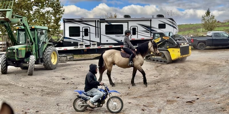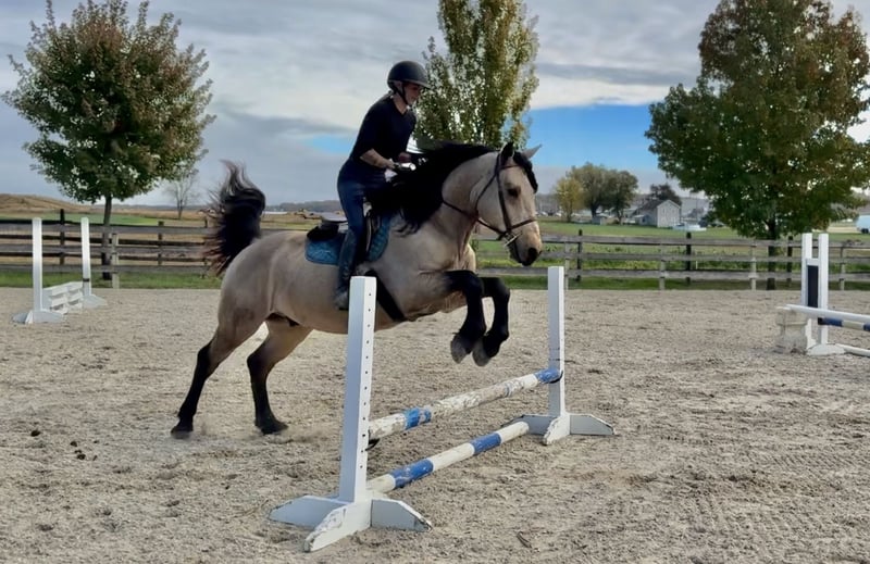 "AVAILABLE ON ONLINE HORSE AUCTION AT www DOT MagicHorseAuction DOT com BIDDING OPEN NOW thru TUESDAY | November 11TH! - BUY IT NOW AVAILABLE! *Final price will be determined on auction site* CONSIGNOR CONTACT INFO: Juli Hubik 717-875-2061 LOCATION: Gap, PA "Meet ✨Bennett✨, a 9-year-old, 15.2 1/2-hand, Perch/Brabant/QH cross gelding. This guy has the prettiest coloring and hair for days! He’s built stout and sturdy, and he’s built to last. He’d be the ideal candidate for group trail rides on an outfit or to be your trusty husband horse. He’s not in a hurry, he likes being out, and he’ll pack anyone you put on him for a trail. He has miles under his belt, a sweet personality on the ground, and good manners. Bennett rides both Western and English and has had a variety of different riders on him. He is big and sturdy enough to carry a heavier rider and is not one to get upset if someone makes a mistake. He’s been up and down the mountains, through creeks and rivers, through bridges and over logs—and has seen just about everything there is to see while out. He is used to wildlife, hikers, bikers, and dogs, and he is traffic- and equipment-safe. He’s been desensitized to the tarp, smoke, fire, flags, and ball. He is used to kids and stands to let them groom and braid his mane and luscious forelock. He has no bad stall or turnout habits and stands to be groomed, bathed, and tacked up. He has great ground manners! Bennett has also been cross-country schooling and would make a great fox hunter or one to take on paper chases! He has athletic ability and is a total natural when it comes to jumping. He has the cutest knees, he’s honest, and he genuinely seems to enjoy it! If you put him in a bad spot, he’ll cover for you, and he’s a super fun, comfortable ride. His trot is great to sit, and his canter is to die for! In the ring, Bennett doesn’t have much experience and doesn’t understand why we’re going around in circles. He’d much rather be out seeing the sights and is best suited for a trail job. He will walk, trot, and canter both ways, but has a little bit of a bored, ""do I have to?"" attitude. That being said, once you point him at some jumps or make things interesting, he’s all for it! If someone wants to continue his arena training, he has a lot of potential; however, he will be more of a project type if you're looking for a Grand Prix dressage horse. He has done lead-line rides and has all the right qualities to make a great therapy horse as well, because this boy is super safe and does love his people! He is UTD on shots, farrier, dentist, and deworming. Located in Gap, PA. Call or text 717-875-2061