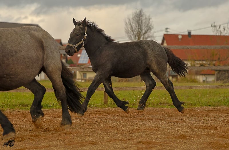 Matze, born on April 26, 2025, is a Palatinate-Ardenner colt in the sought-after blue roan (blauschimmel) color, available for sale. His sire is Mannheimer, and his dam is Belina by Eldorado. Matze is a friendly and calm foal, with an approximate height of 155-157 cm. We are looking for a place where he can grow up among other foals. He is familiar with the basics of foal training and ready for the next step in life. Please contact us at 01776933995.