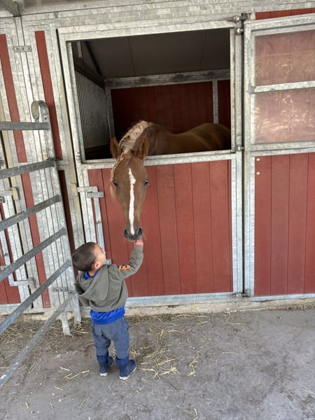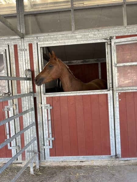 **Te koop: Uitzonderlijke Asil Arabische Merrie** RFH MAHA Voor mij verenigt Maha alle vereisten en eigenschappen van een (Egyptisch volbloed) Arabier. Vooral het karakter is voor mij erg belangrijk. De “beste” Arabieren werden destijds door de Bedoeïenen 's nachts in de tent meegenomen - ze maakten deel uit van de familie. Ze passen zich aan de dynamiek van hun mensen aan, ze begrijpen aanmoediging en berisping. Een pure Arabier houdt van zijn familie en ziet kleine mensen als veulens. Hij respecteert en waardeert zijn mens, mits deze ook met respect en liefde benadert. Maha is een ware schat, het is een waar genoegen om haar prachtige gezicht dagelijks in de stal te zien. Ze houdt van haar mens, gaat braaf op de trailer, wandelt graag, is hoefsmidvriendelijk en heeft een goed hart 🥰 Maak kennis met een opmerkelijke Asil Arabische merrie, geboren in 2023, die zeker je hart zal veroveren en je ruitersport naar een hoger niveau zal tillen. Deze prachtige kastanjebruine schoonheid staat op 145 cm en belichaamt de gratie en uithoudingsvermogen waarvoor het Arabische ras bekend staat. Met een afstamming doordrenkt van traditie en uitmuntendheid, is deze jonge merrie niet alleen een opvallende verschijning, maar beschikt ze ook over de stamina en veerkracht die ideaal zijn voor endurance rijden. Haar levendige maar zachte temperament maakt haar een uitstekende metgezel voor ruiters van alle niveaus. Of je nu wilt concurreren of gewoon wilt genieten van de schoonheid van dit magnifieke ras, deze Asil Arabische merrie is klaar om uit te groeien tot de vriend die je op nieuwe avonturen zal dragen. Mis de kans niet om dit uitzonderlijke paard te bezitten! Voor meer informatie of om een bezoek te plannen, aarzel niet om contact met ons op te nemen!