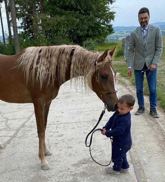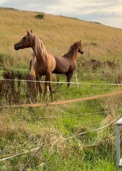 Asil-ägyptische Araberstute „RFH Maha“ – vielversprechende Jungstute mit bestem Charakter Unsere asil-ägyptische Araberstute RFH Maha wird im Sommer dreijährig und überzeugt bereits jetzt durch Ausstrahlung, Qualität und ein gefestigtes Interieur. Beide Elternteile verfügen über ein Stockmaß von über 1,55 m, sodass auch bei ihr von einem entsprechenden Endmaß auszugehen ist. Maha ist altersgerecht und solide erzogen. Sie kennt das Führen, Putzen, Eindecken, Waschen, Verladen, Impfen sowie regelmäßige Hufbearbeitung. Zudem wurde sie bereits mehrfach erfolgreich an der Hand vorgestellt und zeigt sich auch an unterschiedlichen Orten sowie in neuen Situationen stets souverän, aufmerksam und nervenstark. Alltägliche Umweltreize wie Hunde, Katzen, Kinder, landwirtschaftliche Maschinen oder Straßenverkehr sind ihr vertraut und stellen keinerlei Problem dar. Sie präsentiert sich menschenbezogen, vertrauensvoll und unerschrocken. Auch im Umgang mit Kindern zeigt sie sich ausgesprochen brav und kooperativ. Auf eine frühe Ausbildung wurde bewusst verzichtet: Sie wurde bislang weder longiert noch gesattelt. Trotz ihrer guten körperlichen Entwicklung sehen wir vom Anreiten derzeit ab, da Araber als Spätentwickler gelten. Bei entsprechendem Ausbildungsstart im Sommer bringt sie jedoch Alter, Größe und Substanz mit. Ebenso ist es problemlos möglich, ihr noch weitere Zeit zur Reifung zu geben. Haltungstechnisch steht sie im Sommer dauerhaft in gemischter Herde im Offenstall und ist im Winter in der Box untergebracht. Sie kennt sowohl den Umgang mit Hengsten als auch mit Stuten und Wallachen. In unserer Herde ist sie eher rangniedrig, dabei jedoch charakterstark und sozialverträglich. RFH Maha ist eine vielversprechende Jungstute mit hervorragendem Wesen und solidem Fundament für Freizeit, Zucht oder späteren Sporteinsatz. Preis der Qualität entsprechend. Für weitere Informationen stehen wir gerne zur Verfügung.