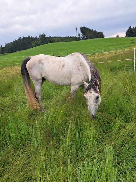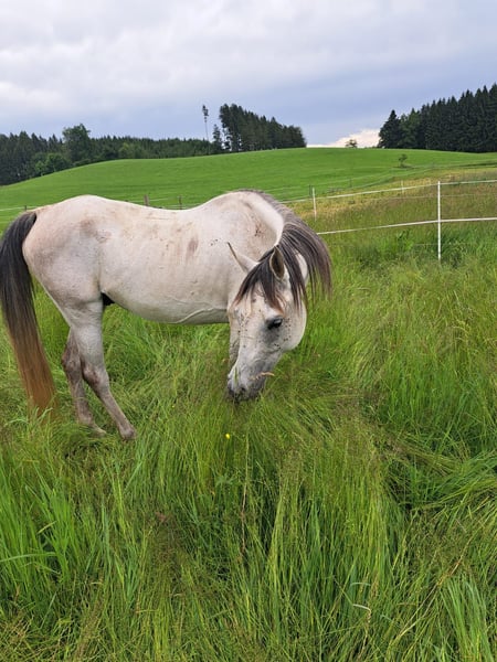 Beautiful Asil Arabian Gelding for Sale We are offering an elegant and characterful Arabian gelding for sale. Born in 2016, he impresses with his noble appearance and friendly temperament. The grey coat highlights his shiny coat and attractive look. With a height of 14.9 hh, he is perfectly suited for leisure riding. He is backed and has a late start in training, making him absolutely unspoiled. Reliable in handling and ideal for riders seeking a versatile and pleasant leisure horse. If you are interested or have further questions, please do not hesitate to contact us. Viewing and trial riding can be arranged by appointment.
