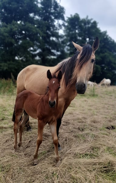 Young Azteca Stallion with Potential Seeks Loving Hands I am reluctantly selling my promising brown Azteca yearling stallion. This handsome young horse is a successful blend of PRE and Quarter Horse, which not only gives him a great appearance but also a lot of potential for the future. His good, expansive movements highlight his quality. He is growing up in a species-appropriate manner and is well mineralized. We see him as a talented partner for ambitious riders in working equitation or the upper leisure sector. Pepe is a little horse that quickly wins hearts with his curiosity and charming nature. If you are looking for a special young horse that wants to be nurtured with love and know-how, please feel free to contact me.