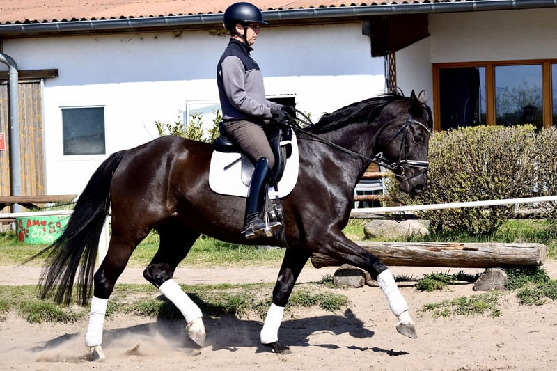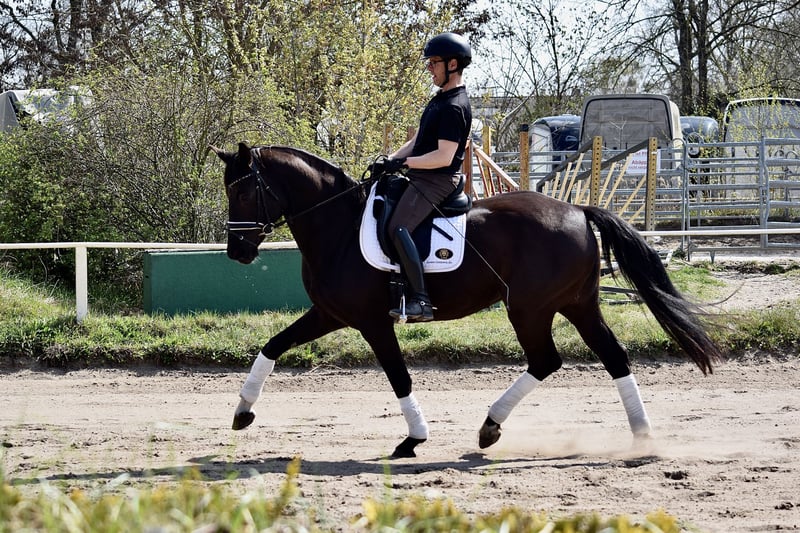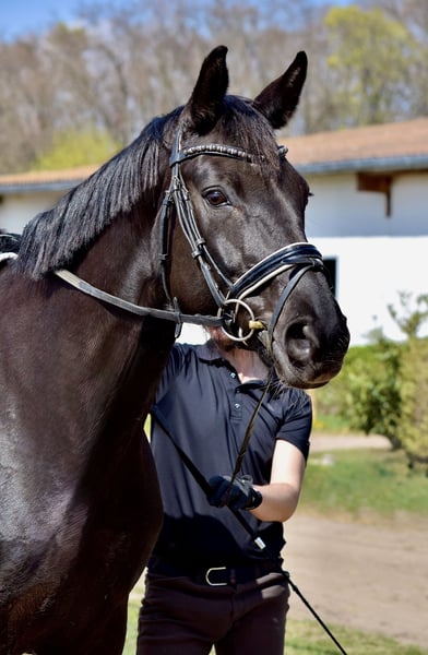 Zum Verkauf steht eine in Dressurpferdeprüfungen der Klasse A und L platzierte Stute, die vor allem durch ihren ausdrucksstarken Trab und die hohe Versammlungsbereitschaft glänzt. Mehrfach erhielt sie die Note 8,0 für den Trab und Galopp. Sie ist leichtrittig und lektionssicher bis zur Klasse L**. Ein Pferd zum Spaß haben und los reiten. 2021 ging sie in die Zucht und bekam 3 Fohlen, die allesamt die Prämie erhielten und bereits als Fohlen den Besitzer wechselten. Sie zeigte sich als gute Mutterstute und die Geburten verliefen problemlos. Die Stute ist auf WFFS getestet und negativ. Weiteren Zuchteinsätzen steht nichts im Wege. Ein sehr guter Tüv aus 2019 liegt vor. Bei uns war sie stets gesund und unkompliziert. Neben ihren weltweit bekannten Vater und Muttervater, kann sich auch ihre Stutenlinie sehen lassen. Ein Halbbruder mütterlicherseits von Fürst William hat 2020 ein positives Körurteil erhalten und ihre Großmutter, die Stute Haute Voleé aus bestem Trakehnerstamm, war selbst bis Inter II erfolgreich. Haute Voleé brachte außerdem den in den USA hocherfolgreichen Trakehner Regenmann (Köraspirant Neumünster 2009), welcher diverse Erfolge (aktuell bis CCI3* - Long) in der Vielseitigkeit nachweisen kann, sowie die Verbandsprämienstute Handiness, welche mehrfach bei den Europameisterschaften der Children und Junioren erfolgreich war.