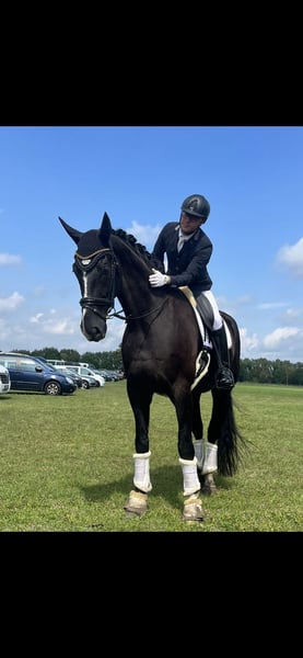 Beautiful Black Gelding – Dressage Horse For sale is an elegant and well-trained 10-year-old gelding. Nashville impresses with his impressive height of 177 cm and his attractive appearance. He is a reliable partner for dressage and has already achieved multiple wins in M* classes and placings in M** with amateurs. Nashville has a balanced temperament and is friendly in handling. He is suitable for advanced riders looking to deepen their dressage training, as well as for ambitious leisure riders seeking a dependable partner. No known health issues No current health certificate (AKU) available Location: 14621 Schönwalde-Glien If you are interested or require further information, please feel free to contact me. Trial rides are available by appointment at any time.