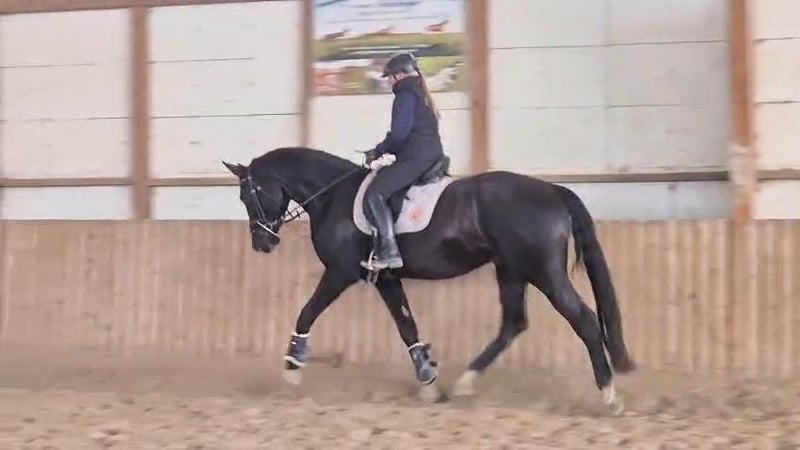 For Sale: Baden-Württembergian Gelding – An impressive black stallion with great potential! This elegant gelding was born in 2022 and impresses with his noble appearance and impressive size. Standing at 174 cm (approximately 16.1 hh), he offers a commanding presence and is ideal for ambitious riders seeking a reliable and expressive horse. The black stallion features a strong build, a friendly nature, and a pleasant temperament. He is well-socialized, eager to learn, and very cooperative both in handling and training. Although he has only recently been backed, he is not suitable for beginners. This horse is perfect for riders who value quality, character, and good bloodlines. It offers versatile use, whether in leisure riding or competition. He is being sold well below value due to a pronounced overbite since foal, which does not affect his suitability as a riding horse.