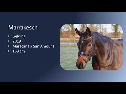 Marrakesch ist ein moderner, charmant auftretender Wallach des Jahrgangs 2019 mit einem aktuellen Stockmaß von 1,69 m. Er stammt aus der Zucht des Pferdezuchtverbandes Baden-Württemberg und überzeugt durch seine erstklassige Abstammung Maracanà x San Amour I, die für Rittigkeit, Leistungsbereitschaft und Qualität steht. Ausgebildet bis Dressur L** zeigt sich Marrakesch stets motiviert und lernwillig unter dem Reiter. Er vermittelt einen sehr angenehmen Reitkomfort, wodurch er sowohl für ambitionierte Amateure als auch für erfahrene Reiter interessant ist. Seine Arbeitsfreude und sein positives Go machen jede Trainingseinheit zu einem Vergnügen. Er hat in nur wenigen Monaten den Außengalopp, Einfache Wechsel und Trab Traversalen auf dem Vechtehof erlernt. Aktuell erarbeiten wir spielerisch die Galopp Traversalen als vorbereitende Arbeit für das Erlernen des fliegenden Galopp-Wechsels. Im Umgang präsentiert sich Marrakesch unkompliziert und ausgeglichen. Er genießt die tägliche Zeit auf der Weide gemeinsam mit seinem Freund und zeigt sich auch im Stall absolut brav und sozial. Ein talentiertes Dressurpferd mit tollem Charakter, das Freude macht und Potenzial für die weitere sportliche Entwicklung mitbringt.