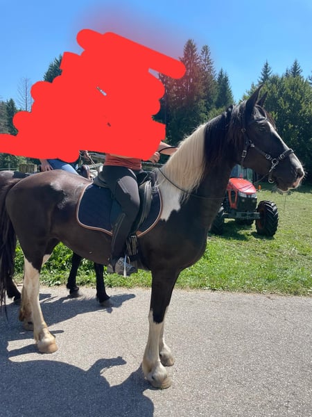 Mare from 2014 purchased in the Netherlands with a passport, excellent for trail riding, had a foal 2 years ago. Height 163 cm.
