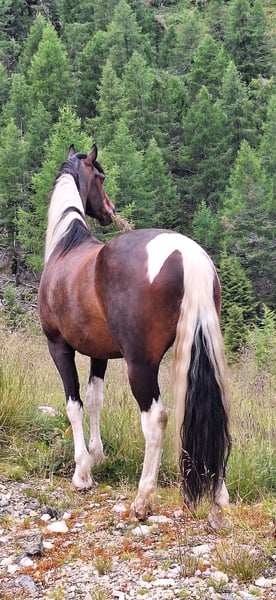 Verkaufe meinen selbstgezogenen Barockpintowallach Ikarus. Er ist am 16.4.2018 bei mir am Hof geboren und hat jetzt ein Stockmaß von ca 1.67cm. Seine Mutter eine PRE Stute Malaya IV und sein Vater Johannes BP09 (Friese/Warmblut). Im Jahr 2018 erreichte er bei der Barockpinto Zuchtschau Österreich die 1ste Premie, 2019 folgte die zweite 1ste Premie und 2021wurde Ikarus erfolgreich zum Deckhengst gekört. Er wurde nach zwei Jahren Deckeinsatz kastriert, danach wurde er als Freizeitpferd geritten, auch ein wenig Freiheitsdressur und kleine Zirkuslektionen beherrscht er. Ikarus ist ein sehr menschenbezogenes und sensibles Pferd, daher braucht er jemanden mit Pferdeerfahrung, Geduld, Ruhe und fairen Umgang. Er ist kein Anfängerpferd!!! Hufschmied und Hänger fahren stellen kein Problem für ihn dar. Ikarus ist fein zu reiten, und durch diese tolle Anparrung verfügt er über schöne Gänge und auch sein Körperbau ist sehr harmonisch. Vor ca. 3 Jahren wurde Ikarus als leichter Allergiker eingestuft, er lebt bei mir im Offenstall mit seinem Norikerfreund, und im Sommer auf Weiden oder Almen. Seit 1 1/2 Jahren merkt man von seiner Allergie sehr wenig, bis gar nicvht mehr. Also wer ein Pferd mit Fokus auf Exterieur, Bewegung und Charakter sucht, ist bei diesem Prachtkerl genau richtig.
