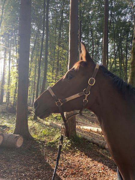 Age: 11 years Discipline: Show Jumping Achievements: Successful up to M** level, including starts at international competitions Use: Sport & Leisure Ariosa is an 11-year-old motivated show jumping mare with a lot of heart and character. She has competed successfully up to M** level and has already gained experience on international terrain. In the arena, she demonstrates ambition, caution, and the necessary fighting spirit to deliver fast and successful rounds — when ridden fairly and consistently. She is well-sized, manageable, and therefore suitable for lighter riders or those transitioning from ponies to full-sized horses. Ariosa is sensitive and not a pure beginner’s horse — with gentle handling and clear aids, she becomes an incredibly motivated and honest partner. Dressage is not her main focus; she can perform simple movements up to L-level, but her heart clearly lies in show jumping. In her free time, she also shows her best side: • Calm in the field • Groundwork • Can be ridden without a saddle • Enjoys walks • Reliable in handling Ariosa also brings great joy in leisure and training routines. Ideally, she would find a home where she can continue jumping and showcasing her qualities, whether in amateur sport or ambitious recreational riding. Born and raised with us, we know her from her very first day and now wish for her a home that will appreciate her as much as we do. A horse for riders who enjoy a dedicated, sensitive, and versatile partner.
