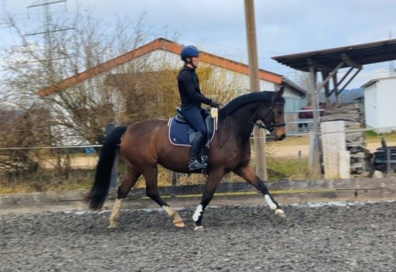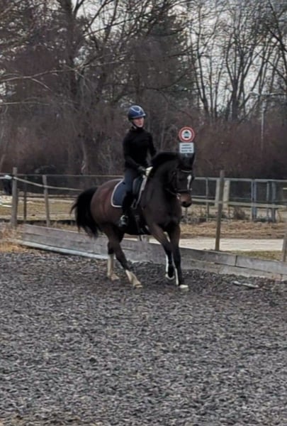 Zum Verkauf steht unsere wunderschöne, 13-jährige Stute Gladdys (Abstammung: Foundation x Delacroix Rose). Gladdys war viele Jahre erfolgreich im Zuchteinsatz und hat mehrere sehr typvolle, qualitativ hochwertige Fohlen gebracht. Ein inzwischen 5 jähriger Sohn kann vor Ort gerne mit besichtigt werden. Gladdys wurde 4-jährig angeritten und anschließend bewusst in der Zucht eingesetzt. Vor allem auf Grund ihrer reiterlichen Qualität in Verbindung mit ihrem einwandfreiem Charakter, ihrem absolut korrekten Körperbau und der daraus resultierenden Gesundheit. Seit ca. einem halben Jahr ist Gladdys bei uns im einem Pensionsstall eingestallt. Sie ist eine rittige, feinfühlige Stute mit genügend Vorwärtsdrang. Dabei ist sie nicht guckig oder schreckhaft, geht leicht an den Zügel, ist schön zu sitzen und verfügt über drei überdurchschnittlich gute Grundgangarten. Da sie reiterlich noch nicht viel Routine sammeln konnte, wünscht sie sich einen Reiter mit sicherem Sitz, Geduld und Feingefühl, der Freude daran hat, gemeinsam mit ihr weiter zu lernen und sie weiter auszubilden. Der Vollständigkeit halber sei erwähnt, dass Gladdys – ihrem sensiblen Wesen entsprechend – auch einmal einen kleinen Satz oder einen kleinen Bocksprung zeigen kann, oder auch am Bein mal zickig reagiert. Dies ist nie bösartig und für uns problemlos kontrollierbar, sollte aber bei der Suche nach dem passenden Reiter berücksichtigt werden. Gladdys ist top gesund, hat keine Vorerkrankungen, super Hufe, klare Beine, keine Allergien oder sonstige Unverträglichkeiten. Sie ist ein toller Allrounder: -Geht gerne im Schritt, Trab und Galopp ins Gelände, auf dem Platz, oder in der Reithalle. -Auch in fremder Umgebung lässt sie sich genauso reiten wie zu Hause -auch einige kleine Sprünge haben wir bereits mit ihr gemacht, wobei sie eine tolle Übersicht und Körpergefühl gezeigt hat. -Stangenarbeit, Boden- oder Handarbeit und Gelassenheitstraining machen ihr große Freude. -Außerdem ist sie verladefromm und brav beim Hufschmied, oder Impfen. - sie ist charakterlich so zuverlässig und ehrlich, dass unser 3 jähriger Sohn regelmäßig mit Longiergurt auf ihr reitet und auch an der Hand traben kann. Im Stall ist sie ein sehr liebes, verschmustes Pferd, ausgesprochen menschenbezogen, anhänglich und genießt die Zeit mit „ihrem“ Menschen. Eine besondere Stute die uns sehr am Herzen liegt und für die wir einen einfühlsamen, liebevollen Reiter suchen. Bei ernsthaftem Interesse freuen wir uns über eine Kontaktaufnahme unter 0176 22278087