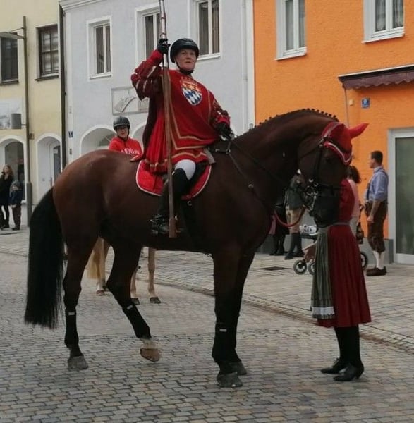 schicker, braver Wallach schweren Herzens nur in absolut gute Hände abzugeben (aus gesundheitlichen Gründen der Reiterin momentan nicht im Training) FranzFerdinand ist eine Seele von Pferd und für jeden Spass zu haben, egal ob für den Freizeit- oder Turnierreiter. Er kennt longieren, Doppellonge, Bodenarbeit, hat auch schon meinen Sohn im Schlitten gezogen, geht ins Wasser, im Springen bis L platziert (er will immer über den Sprung - verweigern kennt er nicht), geht gerne ins Gelände, egal ob alleine oder in der Gruppe, ist Volksfestauszug gegangen. Trotzdem ist er kein reines Anfängerpferd, da er über reichlich Go verfügt und auch mal seine Freude in Form von kleinen Bocksprüngen (nie bösartig) zeigt, kein steigen. Schmiede- und verladefromm (aktuell Barhuf), ebenso beim Tierarzt. Wurde regelmäßig dem Osteopathen vorgestellt, Zähne wurden im Herbst 2024 gemacht, regelmäßig geimpft und entwurmt. FranzFerdinand steht bei mir aktuell im Offenstall mit 2 weiteren Wallachen, er ist herdenverträglich, auch mit Ponys. Ich würde mir ein liebevolles Zuhause im Offenstall oder mit viel Weidegang wünschen. FranzFerdinand ist 14 Jahre alt und 1,80m gross. Standort ist 84130. Aufgrund eines Befundes, der absolut ausgeheilt ist und bis jetzt keine Probleme macht, unter Wert zu verkaufen. Das gesamte Zubehör, kann gegen Aufpreis ebenfalls erworben werden (von der Abschwitzdecke bis zum Sattel alles).