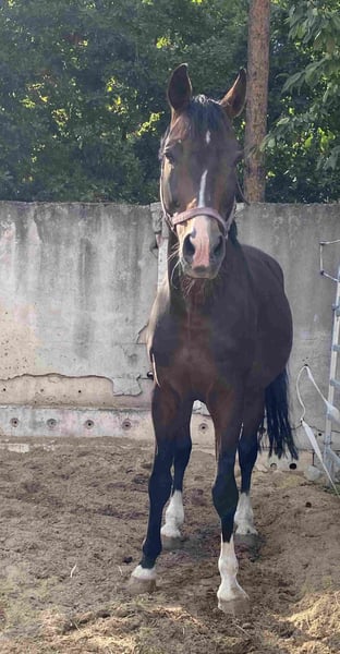 Maximilian is a very friendly and kind stallion with three very good basic gaits. Unfortunately, we cannot provide any information about his previous use. He may have been ridden. Due to an illness of the suspensory apparatus in the hind legs, he can no longer be ridden. We are seeking a retirement home for this wonderful stallion. If castration is a requirement, the costs will be covered. The offered horse is for sale due to a veterinary authority-initiated seizure. An equine passport is available. If a pre-purchase examination is desired, it can be arranged by the buyer at their own expense. After the purchase of the horse, transportation must be organized independently and at the buyer's cost. The horse is sold excluding any warranty. The seller assumes no guarantee or liability for specific characteristics or uses. Please submit a written bid including your name, address, and place of keeping. After submitting a corresponding bid, the veterinary office will contact the interested buyer. The allocation will be made to the highest bid after checking the future keeping conditions. veterinaeramt@lkee.de PLEASE NOTE THAT ONLY WRITTEN BIDS INCLUDING THE BID AMOUNT AS WELL AS THE NAME AND RESIDENTIAL ADDRESS WILL BE CONSIDERED! AFTER REVIEWING THE BIDS, CONTACT WILL BE MADE WITH THE BUYERS AND A VIEWING APPOINTMENT WILL BE ARRANGED. Sale only within Germany!