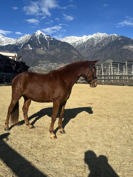 Vino Rosso è un giovane castrone estremamente simpatico, nervoso e molto socievole, con grande presenza. Conquista per le sue andature di base sopra la media e mostra anche un buon salto durante il salto libero. In maneggio è coraggioso e semplice da gestire – ferratura, pulizia, conduzione: tutto senza problemi. Attualmente è in fase di avviamento dolce e dimostra grande voglia di imparare e molta gioia nel lavoro. Vino Rosso proviene direttamente dal suo allevatore e possiede tutte le premesse ideali per un futuro di successo nello sport o come cavallo da leisure di alto livello. Le sue andature di base sono eccellenti, con particolare risalto al suo passo eccezionale. Dispone inoltre di un trotto dinamico, con molta spinta da dietro e un ritmo sicuro. Il suo galoppo potente è di alta qualità. Vino viene attualmente preparato con cura per il suo futuro ruolo. È già stato longato e si è abituato al peso del cavaliere. Grazie alla sua qualità superiore e al suo potenziale, il prezzo salirà con l’avanzare dell’addestramento. Per ulteriori domande, foto e video, non esitate a contattarmi.