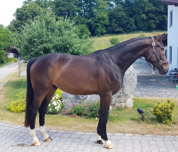 Florentin G von Fidertanz aus unserer Staatsprämienstute Florentine verbindet große Rittigkeit mit sehr guten Grundgangarten. Angeritten mit Anfang 4 kann er demnächst in Reitpferde- und Dressurpferdeprüfungen starten. Er ist liebenswürdig und gelassen und geht auch gerne ins Gelände. Gute Röntgenbilder liegen vor.