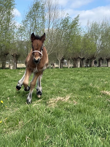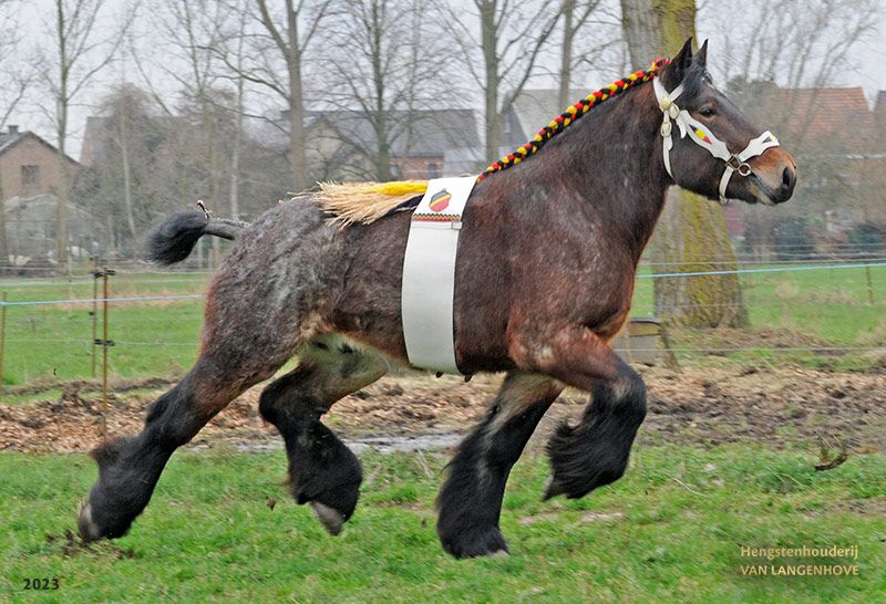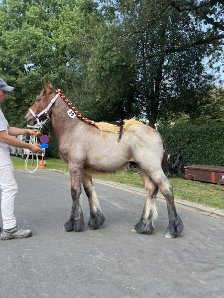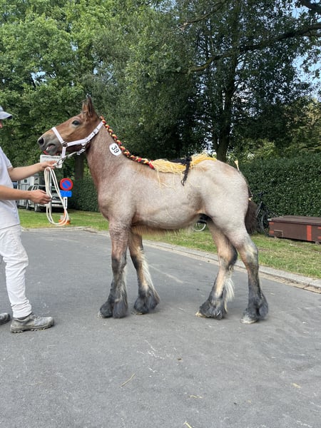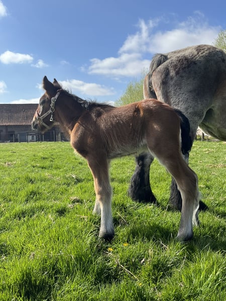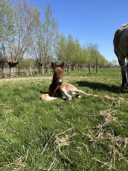 Ben je op zoek naar een grote knuffelbeer en een vriend voor het leven? Dan is Kamiel uiterst geschikt voor jou! Kamiel van den Bunder is een bruinschimmel hengstveulen geboren op 30 april 2025. Hij is bij ons geboren en hierdoor ook goed in de hand sinds dag 1 op deze aardbol. Kamiel is een heel lief en rustig veulen, houdt van knuffelen en is vooral zeer zachtaardig. Kamiel heeft als moeder Angela van’t Ravensgat. (Foto 11) Angela zelf heeft ook een gouden karakter en kon op verschillende prijskampen ook reeds enkele titels op haar naam schrijven. Zo behaalde ze verschillende mooie eerste plaatsen in o.a. IJzendijke, Ghlin, Deinze, Evergem, Merchtem, Oudenaarde en Vilvoorde en werd ze bovendien ook nog bekroond tot Kampioene Evergem 2019! Ondanks haar leeftijd, blijft Angela ook zeer goed behouden en bewegen. De vader van Kamiel is Scott van de Voshoek (Foto 12 & 13). Scott zelf werd als jaarling kampioen in Oudenaarde, Deinze & Waasmunster! Hij heeft ook een zeer explosieve draf, die we ook terug zien in Kamiel. Kamiel zou uiterst geschikt zijn als recreatief rij en wandelpaard, aangespannen voor de kar, therapiepaard, weidemaatje voor een andere ruin of merrie,… Kamiel werd ondertussen reeds gespeend van zijn mama en heeft hier geen last van ondervonden