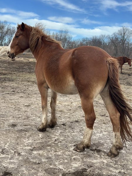 13 yr old Belgian quarter horse cross mare 16.2 hands ➰Bred to my black Clydesdale stud➰ Winks is a fantastic mare that I’ve owned for the past few years. She floats across the ground and is super light footed for her size. Broke to ride, walk trot canter and a good stop on her Has been a trail horse and did great in groups but can be buddy sour. She has not been rode since early last year before she was bred. She is blind in her right eye. Happened when she was a foal and affects her in no way. This mare is going to have an extremely nice foal and was easy to breed So if you’re wanting one to keep breeding or to ride after she’s for you!! Extremely easy keeper Good in a herd Stands tied Loads great Good for farrier No maintenance No health issues