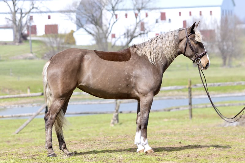 ▪️▫️◾️𝐭𝐡𝐞 𝑴𝒂𝒚 𝐒𝐞𝐥𝐞𝐜𝐭◾️▫️▪️ Happening now thru MONDAY | MAY 4th - Available EXCLUSIVELY on HorseBid's website! For more details and to register visit: www.Horsebid.com CONSIGNOR CONTACT: CM Farms 717-875-2061 LOCATION: Gap, PA BREED: Belgian/QH REGISTERED: No REGISTERED NAME: Darla COLOR: Chocolate Palomino HEIGHT: 15.2 AGE: 4 GENDER: Mare 💕 Darla — As Sweet as She Is Special 💕 Meet our girl Darla—this is one that’s been pretty easy to get attached to around here. This sweetheart is a 4-year-old chocolate palomino Belgian/QH cross standing right around 15.2–15.3hh, with all the dapples, chrome, and eye-catching color you could ask for. The girl is built a little lighter and more athletic than most, which makes her especially comfortable, balanced, and fun to ride. She’s the kind that gets noticed, but it’s her personality that really keeps you hooked. Darla has been brought along the right way, and it shows in everything she does. She’s soft, willing, and very in tune with her rider. This mare neck reins, direct reins, and moves off your leg with ease, and she’s got a nice handle to her already. The feel she gives you is what people spend years looking for—light in your hands, responsive, and always trying to do the right thing. We’ve been putting some time into her English and dressage work, and she’s taken to it like a natural. The girl has a pretty way of going, stays rhythmic, and carries herself nicely. We’ve also started her lightly over fences, and this little mare has been honest, brave, and just plain fun. She even made her first trip to a schooling show and came home with ribbons, handling the whole experience like a seasoned horse. Out on the trail, she’s just as dependable. This sweetheart is the same whether you’re at home or somewhere new. She’s been through rough terrain, water, woods, and even ridden into town with traffic and noise, and nothing seems to shake her. She’ll lead, follow, or just quietly go along—whatever you ask of her. She’s also been through our desensitizing program and has seen tarps, flags, smoke, dogs, and equipment. The girl takes it all in stride and keeps a level head. Around the barn, she’s just a pleasure to have—easy to catch, stands quietly, enjoys being groomed, and gets along well turned out. No bad habits, no drama—just a good-minded young mare. Darla is one of those you find yourself looking forward to riding. She’s kind, willing, and meets you in the middle every time. This is a mare you can enjoy right now, but she’s also the kind that’s only going to keep getting better and more valuable with time. We’d love to see this girl go on and be someone’s go-to partner—the kind you reach for whether it’s the show ring, a long trail ride, or just a relaxing day at the barn. 📍 Gap, PA 🎥 Full video available 🚚 Nationwide shipping available 💰 Serious inquiries only. Horses like this don’t come along often, and we think a lot of this one. like this are not easy to come by, and she is priced accordingly.