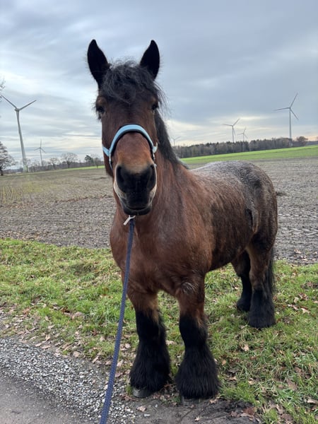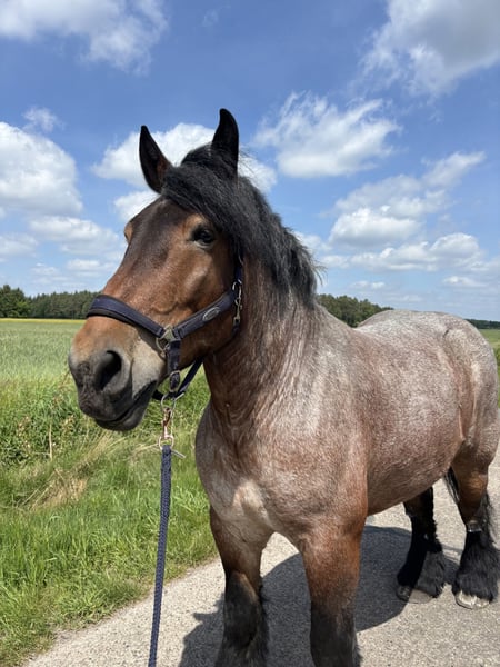 Zum Verkauf steht eine belgische Kaltblut-Stute, geboren am 17.05.2018. Sie hat einen Stockmaß von 165 cm. Sie zeigt sich im Umgang äußerst freundlich und gelassen. Spaziergänge im Gelände oder entspannte Stunden im Stall – diese Stute ist eine treue Begleiterin. Leider hat sie Rassetypisch Cpl. Bei Interesse oder weiteren Fragen stehe ich Ihnen gerne zur Verfügung.