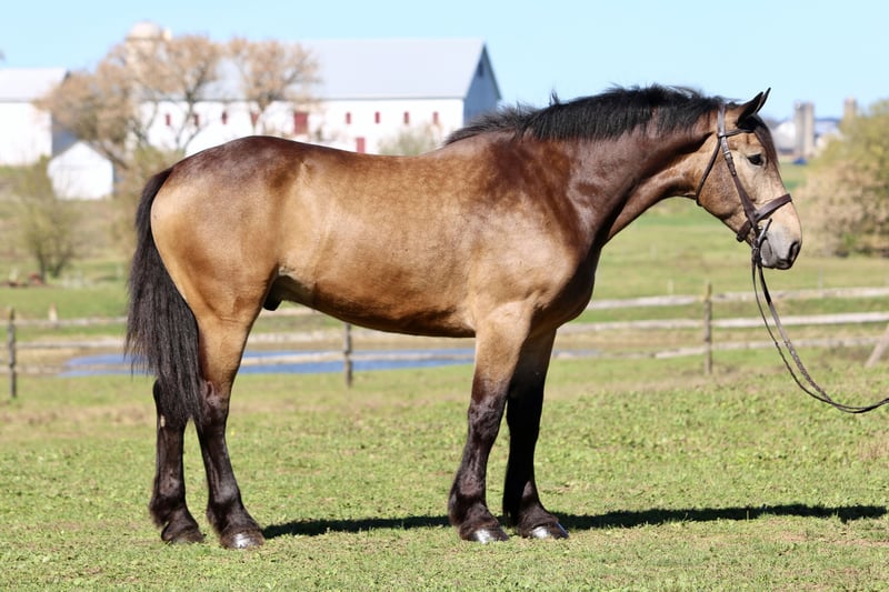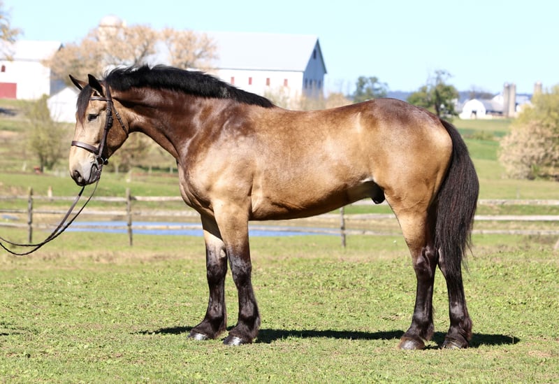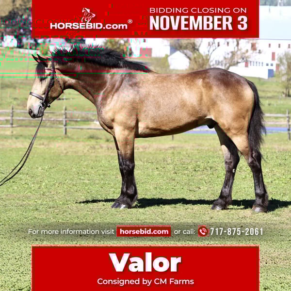 ⚜️𝐓𝐇𝐄 𝐅𝐀𝐋𝐋 𝐇𝐄𝐑𝐈𝐓𝐀𝐆𝐄 𝐂𝐋𝐀𝐒𝐒𝐈𝐂⚜️ Happening now thru MONDAY | NOVEMBER 3rd - Available EXCLUSIVELY on HorseBid's website! For more details and to register visit: www.Horsebid.com CONSIGNOR CONTACT: CM Farms 717-875-2061 LOCATION: Gap, PA BREED: Belgian/QH X REGISTERED: No COLOR: Sooty Buckskin HEIGHT: 17 AGE: 4 GENDER: Gelding ✨ Meet Valor! ✨ He quite literally stops people in their tracks. From veterinarians to professional trainers, everyone who lays eyes on Valor has the same reaction: pure amazement. His striking, one-of-a-kind color, massive build, and soft, kind eye make him unforgettable. Standing a true 17 hands, this 4-year-old Belgian × Quarter Horse cross gelding has a presence that’s nothing short of breathtaking. But Valor isn’t just a pretty face. Beneath that impressive frame is one of the kindest, safest, and most dependable young horses we’ve ever had. He’s the real deal—quiet, curious, and honest. He’s truly been one of the highlights of our year, and it’s easy to see why. Valor rides both English and Western, is beautifully broke to drive, and has been lightly introduced to jumping. He’s the kind that makes you proud every time you pull him out—steady, dependable, and always eager to please. 🐴 Under Saddle Under saddle, Valor is everything you want in a horse. He’s soft in the bridle, responsive off the leg, and naturally balanced in all three gaits. His walk, trot, and canter are smooth, comfortable, and easy to sit. He’ll go on a loose rein or in light contact, happily adjusting to his rider’s comfort level. He’s been ridden by all types of riders—from confident kids to adult beginners—and he’s the same every time. Valor is patient, forgiving, and always tries to do the right thing. He’s been started over small fences and shows quiet willingness and curiosity. He doesn’t get nervous or rush—he simply approaches new things with a calm, steady mind. With his great attitude, he’ll continue to develop nicely wherever his new person wants to take him, whether that’s small jumps, trail obstacles, or light schooling work. 🌳 On the Trail Valor shines on the trail. He’s confident, sure-footed, and happy to lead or follow. He’s crossed rivers, bridges, and fields, and has been around cars, tractors, and wildlife without a single spook. He loves being out and about, ears forward and relaxed. Whether you’re out alone or in a group, Valor makes every ride enjoyable. He’s the one you can throw a beginner on and know they’ll come back grinning. 🛞 In Harness Valor is also beautifully broke to drive—both single and double. He’s been used for events, light farm work, and pleasure driving. He stands quietly to hitch, moves off smoothly, and is 100% traffic safe. He’s steady, patient, and professional in every situation. 🏠 In the Barn In the barn, Valor is an absolute sweetheart. He’s respectful, calm, and has that puppy-dog personality everyone loves. He stands quietly to groom, bathe, clip, or tack, and genuinely enjoys attention. He’s wonderful for the farrier and vet (and they all comment on how good he looks), loads and unloads quietly, and hauls without a fuss. He’s polite for barn staff, turns out well with others, and is safe for kids or anyone to handle. 💛 The Whole Package Valor truly has it all—looks, brains, and heart. He’s the rare kind of horse that catches your eye from across the field, then completely wins you over with his temperament. Whether you’re looking for a dependable family horse, a trustworthy trail partner, a classy carriage horse, or just a gentle, beautiful gelding to enjoy every day—Valor checks every box. He’s one of those once-in-a-year horses—steady, kind, and absolutely stunning. Valor is, without question, one of our highlights of the year, and whoever ends up with him will be one very lucky person. 💫