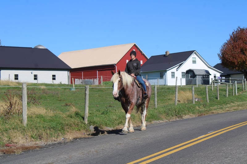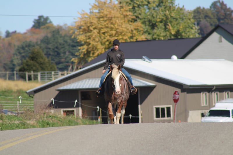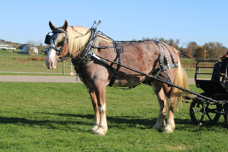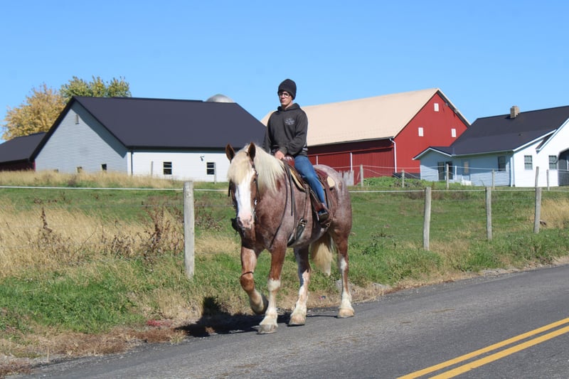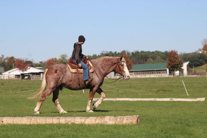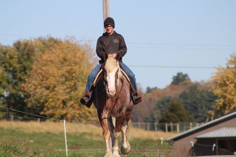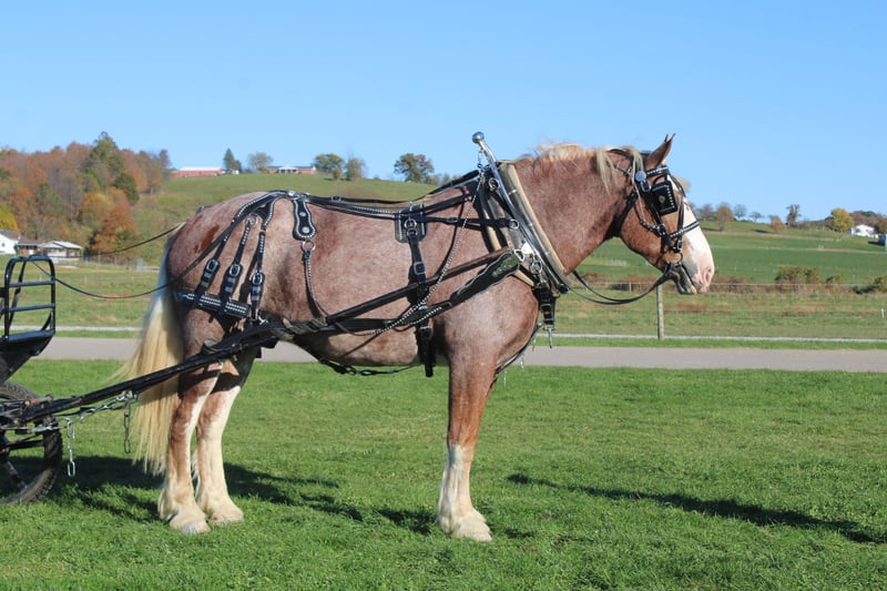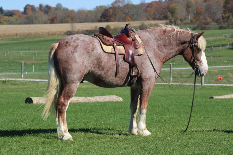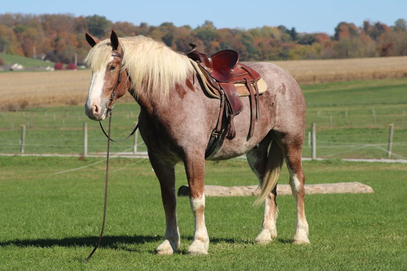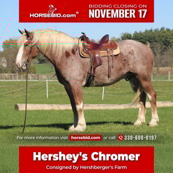 🎲𝓽𝓱𝓮 𝐑𝐈𝐃𝐄𝐑'𝐒 𝓒𝓱𝓸𝓲𝓬𝓮🎲 Happening now thru MONDAY | NOVEMBER 17th - Available EXCLUSIVELY on HorseBid's website! For more details and to register visit: www.Horsebid.com CONSIGNOR CONTACT: Hershberger's Farm 330-600-0197 LOCATION: Millersburg, Ohio BREED: Belgian X Quarter Horse REGISTERED: No REGISTERED NAME: Hershey's Chromer COLOR: Red Roan HEIGHT: 17 AGE: 4 GENDER: Gelding WOW WHAT A STAND OUT!!! Meet Hershey's Chromer!! He is a 4 year old draft cross gelding that is very pretty to look at. Chromer has been used for all types of jobs here on the farm. He has a very quiet temperament but is still very athaletic! He has been driven single a lot as well as double and has also been out in heavy traffic a lot and doesn't mind it at all. Chromer has been on countless trail rides and doesn't mind being ridden English or Western. He is totally beginner safe for anyone to ride or drive. Chromer picks up both leads and will easily step up and canter when he is asked to. He has a nice slow and smooth canter for a draft. Chromer was giving rides here on our farm this summer so he is used to getting lots of attention and he loves all of it!! He is very friendly with kids and also very gentle in the barn.. Chromer will walk up to you in the pasture. He stands nice for the farrier and loves getting a bath. Hershey's Chromer is very special and will always be the crowds favorite!!! If you would like to learn more about Hershey's Chromer call or text John @ 330-600-0197.