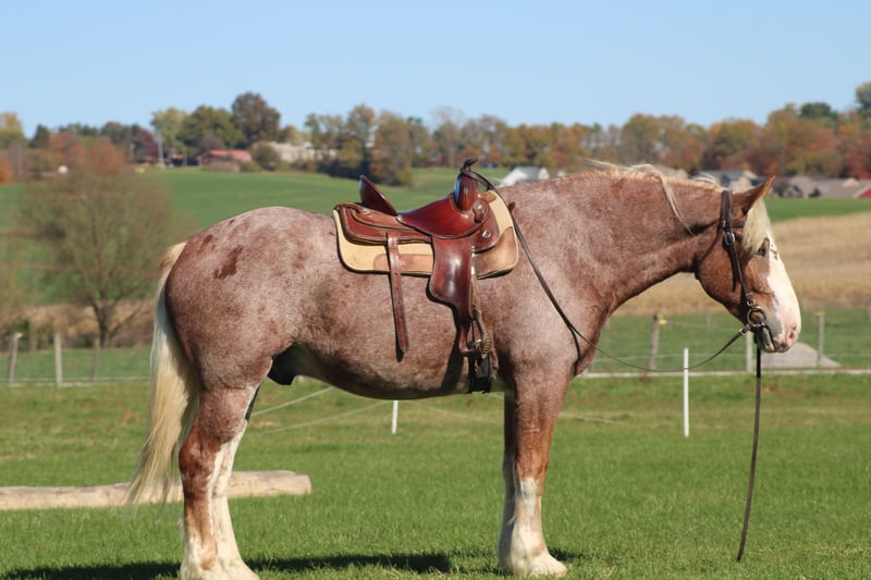 Hershey's Chromer 4 Yr old 17hh Red Roan Belgian X QH Gelding