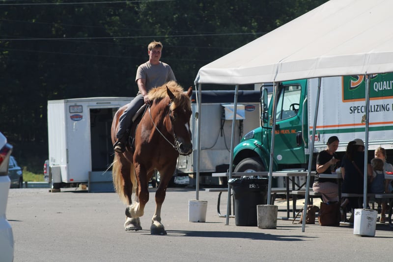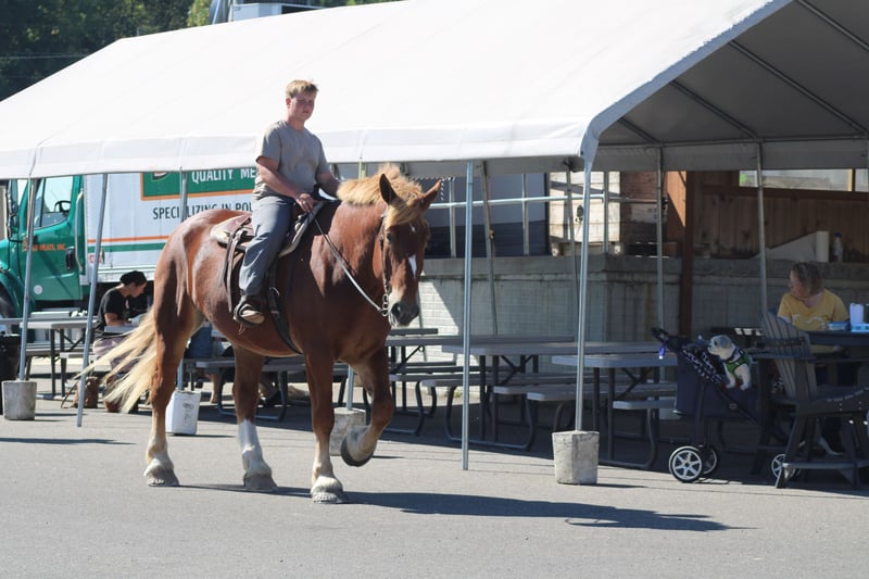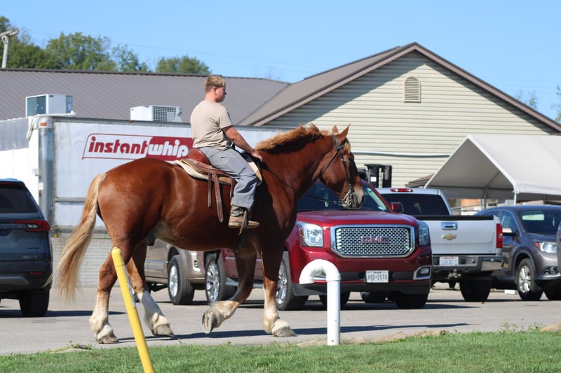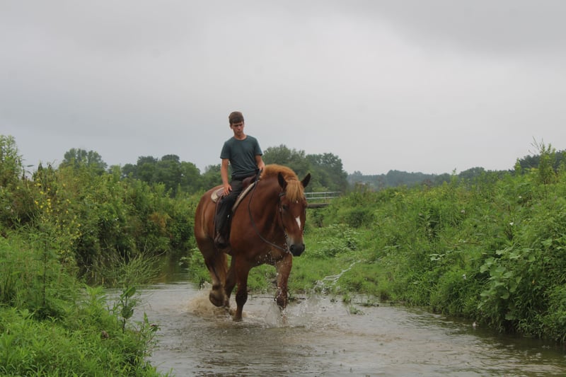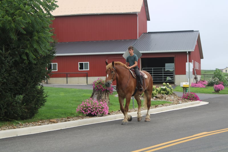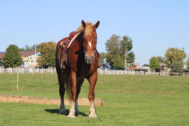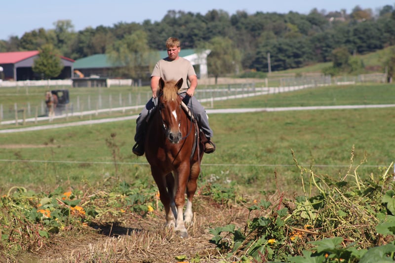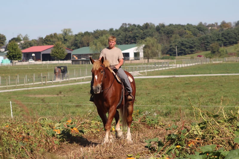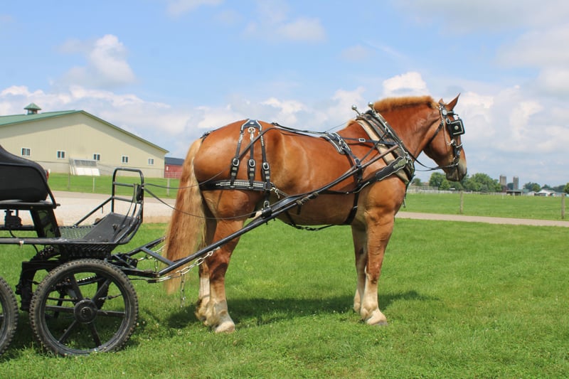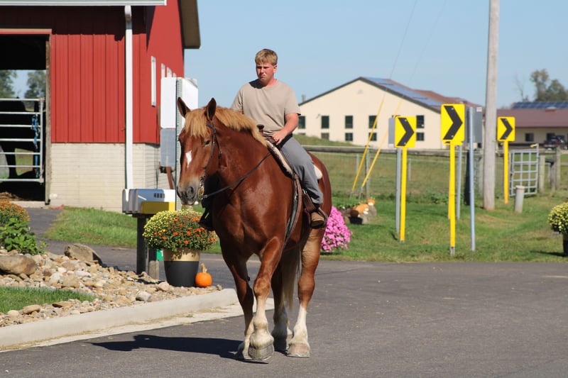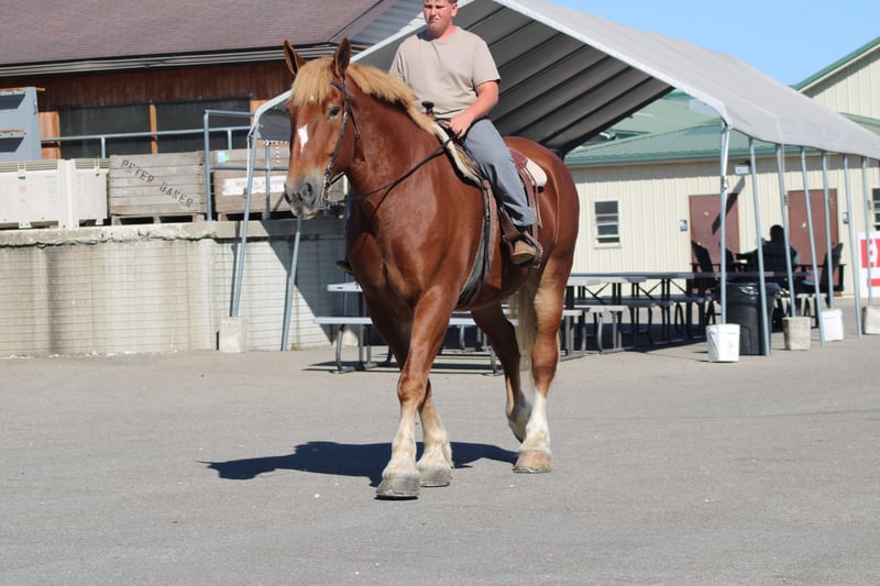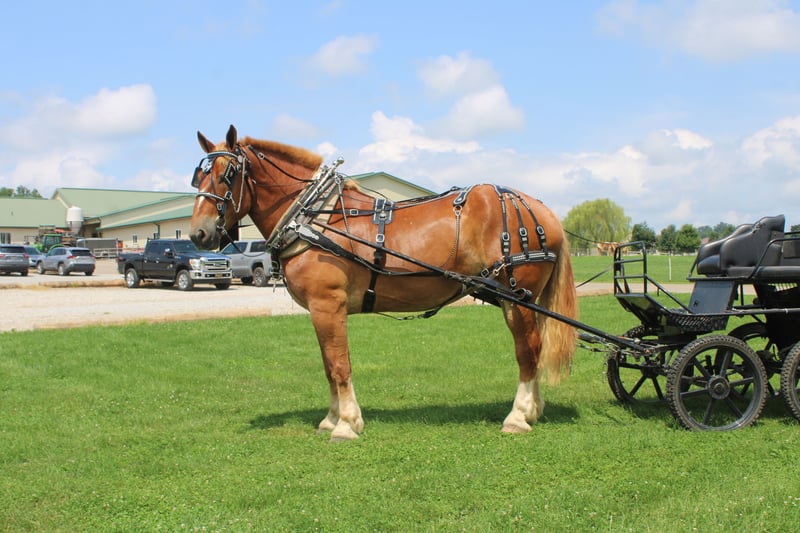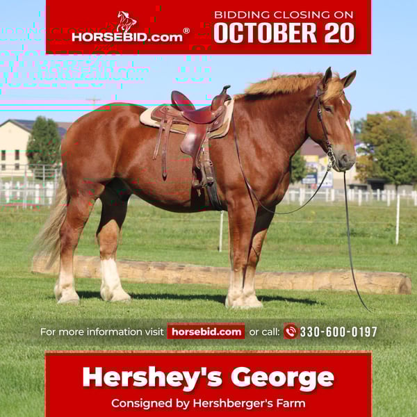 ♦️ 𝐭𝐡𝐞 𝐀𝐌𝐄𝐑𝐈𝐂𝐀𝐍 𝓕𝓪𝓵𝓵 𝓒𝓵𝓪𝓼𝓼𝓲𝓬 ♦️ Happening now thru MONDAY | OCTOBER 20th - Available EXCLUSIVELY on HorseBid's website! For more details and to register visit: www.Horsebid.com CONSIGNOR CONTACT: Hershberger's Farm 330-600-0197 LOCATION: Millersburg, OH BREED: Belgian REGISTERED: No COLOR: Sorrel HEIGHT: 17.3 AGE: 8 GENDER: Gelding Hershey's George is an 8 year old Belgian gelding. Here is an absolute GENTLE GIANT!! He has been here on the farm giving rides from our merry go round to giving carriage rides on the busy highway. George is good for any level rider driver and is 100% BEGINNER SAFE!!! If you are looking for a big baby that loves attention George would be a great fit. He has been on lots of trail rides and loves to go through water. George will get up and trot and canter if you ask him to but he is defenately more whoa then go and would much rather just walk along at his leisure pace. George also likes to get a bath and stands nice for the fairrer and to clip. He gets along great with other horses. Every evening George goes out to pasture then in the morning he comes to the barn and is ready for another day. Twice a day morning and evening he gets 2 quarts of grain of the 12% horse feed. And free choice hay either first cutting or a soft grass hay. If your looking for a slow steady easy going personality, look no further. To learn more about George call or text 330-600-0197.