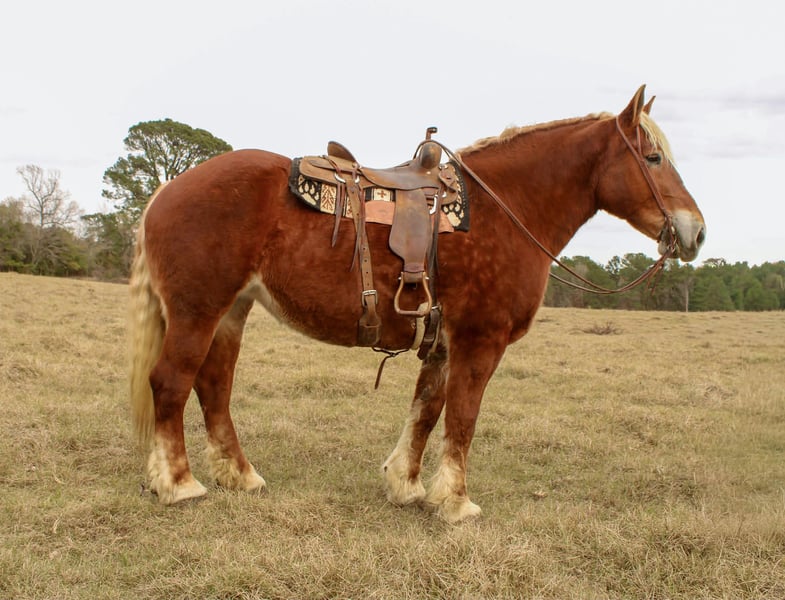 ONLINE AUCTION Place your bids at www.PlatinumEquineAuction.com Starting Bid $3500 Auction ends January 4th, 2025 Need a new saddle? Check out White Rock Saddles on our website or Facebook Meet Bella a stunning Belgian mare with a heart of gold. At 10 years old and standing 16.2 hands tall, Bella is the perfect combination of size and grace. She has a calm and willing temperament, making her ideal for riders of all levels. Bella has extensive trail experience and is confident in various terrains. Whether you're navigating wooded paths, crossing streams, or enjoying open fields, Bella will take care of you. She is always eager to please and loves spending time people. Bella is also broke to drive both single and double and has been used as a work horse as well! Don't miss the opportunity to make Bella your own. Located in Rusk TX, nationwide shipping is available! Please reach out to Rachel with TR Livestock 605-370-4644 if you have any questions! ONLINE AUCTION Place your bids at www.PlatinumEquineAuction.com Starting Bid $3500 Auction ends January 4th, 2025 Need a new saddle? Check out White Rock Saddles on our website or Facebook