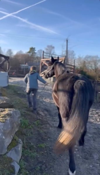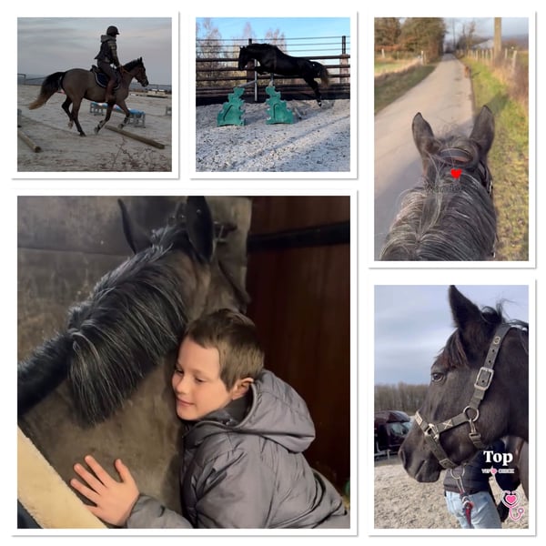 Adorable ponette taille D, (145 cm) âgée de 5 ans. Polyvalente, très brave et dotée d’un excellent mental, elle convient parfaitement pour une famille ou un jeune cavalier encadré. Pac se distingue par son intelligence, sa bonne volonté et son envie permanente de bien faire. Elle apprend vite et se montre toujours à l’écoute de son cavalier. - En dressage, les bases sont largement acquises. - En obstacle, elle saute un petit parcours sur 60 cm actuellement. Magnifique sauts en liberté . Top technique , montre des moyens pour faire 1m/110 au moins à terme . - En cross, vu son mental, cela sera une formalité. ( sera testée dès qu'il sera possible de retourner sur les terrains ) - En balade, c'est un vrai bonheur, elle part seule ou accompagnée sans stress. Au quotidien, elle est extrêmement facile : • soins sans difficulté (pansage, douche, maréchal, tonte, véto, ...) • se transporte facilement • gentille et respectueuse à pied Une ponette attachante, proche de l’humain, qui adore qu’on s’occupe d’elle. Idéale pour évoluer tranquillement dans le travail tout en se faisant plaisir. En ordre de tout : Visite véto dispo + radios OK . Dents faites , vermifugée, vaccinée . 📍 Visible en Belgique, du côté de Liège . 📩 Infos et vidéos sur demande par whatsapp : 0032479481088