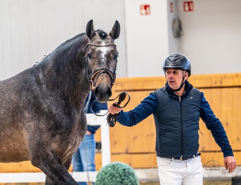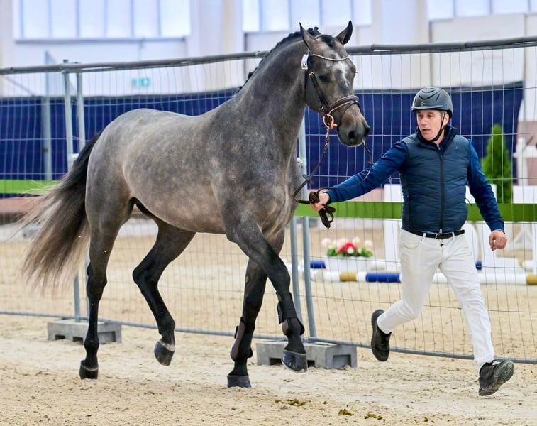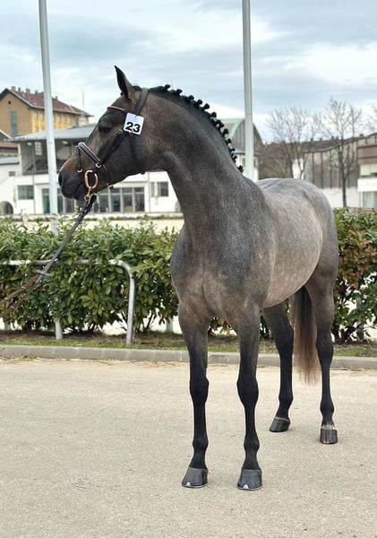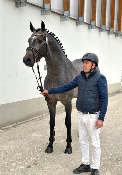 Zapassini De Bognar Z Farbe: Grey Stockmaß: 172 cm Alter: 3,5 Jahre Eignungen: Springpferd / Sportpferd / Zuchthengst Ausbildungsstand: Mittel (fortgeschritten im Springsport) Zucht: Zangersheide Hengst, geprüft und zugelassen – Approved Breeding Stallion Beschreibung: Zapassini De Bognar Z ist ein sehr athletischer, sportlich gebauter Hengst mit hervorragender Sprungtechnik. Seine natürlichen Fähigkeiten, schnelle Auffassungsgabe und ein ausgezeichnetes Bascule machen ihn zu einem idealen Kandidaten für den Springsport. Er stammt aus einer bewährten Blutlinie: VDL Zapatero x Cassilano – Cassini I x Odermus R – Calido I Gesundheitsstatus: röntgen- und endoskopisch geprüft, uneingeschränkt belastbar. Charakter: kooperativ, intelligent und leicht zu handhaben. Besonderheiten: Der Hengst befindet sich in Ungarn in Bertartung. Nach Vereinbarung jederzeit vor Ort besichtigbar. Auf Wunsch ist auch eine Video-Besichtigung per Anruf möglich. Dieser Hengst bietet enormes Potenzial sowohl im Sport als auch in der Zucht. Perfekt für Züchter, die auf Qualität und Leistungsbereitschaft Wert legen.