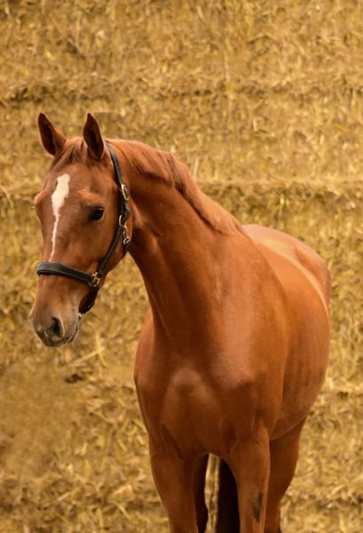 For sale is a stunning 4-year-old chestnut mare with a very sweet, affectionate temperament. She has recently been gently backed and consistently demonstrates motivation, willingness to learn, and nerves of steel. With a promising jumping pedigree and dressage lineage on her dam’s side, she possesses excellent prerequisites for competition. Her three basic gaits are rhythmical and showcase particular elasticity and expression. She currently measures approximately 16.2 hh and is still growing. In daily handling, she proves to be uncomplicated, people-oriented, and curious – a truly reliable partner with charm and potential. Ideal for ambitious riders seeking a young horse with great potential for jumping, dressage, or versatile use.