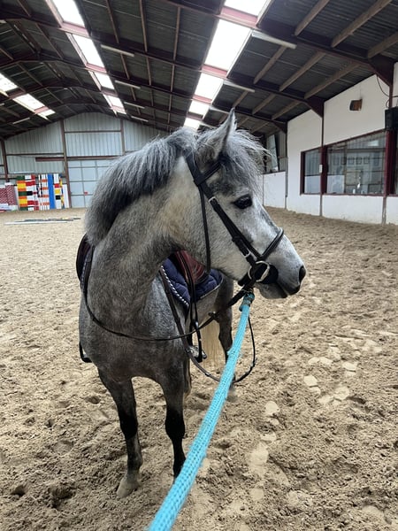 jeune poney, très gentil. part seul ou accompagner en ballade très gentil prêt sur parcours 70/80cm vert mais apprends très vite
