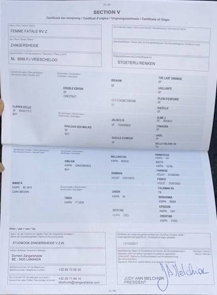Volle zus van de Flipper, internationaal toppaard onder ruiter Lorenzo de Luca. Drachtig van Don't touch Tiji Hero. Uitgerekend voor eind april 2026 .