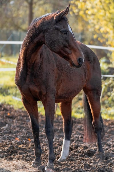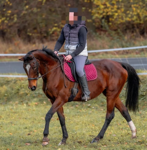 Frou-Frou-A (geb. 05/2011) ist eine Belgische Warmblutstute mit belgischem Pass und abgelegter Stutenleistungsprüfung. Vorab: alle Bilder zeigen den aktuellen Zustand, das letzte 3er-Collagenbild sind recherchierte Bilder von früher. "Frou" verfügt über eine hochkarätige Abstammung mit bekannten Linien wie Weltmeyer, Donnerhall und Sandro Hit (siehe Bild Pass) und bringt interessante Voraussetzungen für Zucht und Sport mit. Frou war laut Recherchen über viele Jahre als Zuchtstute in Belgien und auch in Österreich eingesetzt worden und hat mehrere Fohlen gebracht (laut Recherchen werden ihre Nachkommen erfolgreich in Zucht und Sport eingesetzt). Anschließend kam sie nach Deutschland. Über ihre genaue Vergangenheit ist nicht alles bekannt, jedoch ist sicher, dass sie zuletzt durch unglückliche Umstände in keine optimalen Haltungsbedingungen geraten ist und vom Vorbesitzer da raus "gerettet" wurde. Seit sechs Monaten befindet sie sich im aktuellen Besitz und wurde in dieser Zeit von uns sorgfältig aufgebaut und wieder an die Arbeit herangeführt. Sie ist inzwischen wieder in allen Gangarten reitbar, benötigt jedoch aktuell noch etwas Zeit und gezieltes Training, um mehr Go, Kraft und Ausdauer aufzubauen. Sie wurde erst seit kurzer Zeit wieder reiterlich angeschoben, diese Entwicklung ist also noch im Aufbau und kann bei entsprechendem Training gut weiter gefördert werden. Für Anfänger ist sie nicht geeignet, ein erfahrener Reiter ist Voraussetzung. Frou benötigt ausreichend Zeit, um sich an eine neue Umgebung zu gewöhnen. Sie ist nach einer Eingewöhnungsphase sozial verträglich im Umgang mit anderen Pferden. Aktuell erhält sie tagsüber Weidegang und steht nachts in der Box. Die Boxenhaltung ist grundsätzlich machbar, sie benötigt jedoch eine längere Eingewöhnungszeit, um sich darin wirklich wohlzufühlen. Aus diesem Grund würden wir sie bevorzugt in Offenstall- oder Weidehaltung vermitteln, da sie sich dort wahrscheinlich deutlich schneller und besser zurechtfindet. Der Transport im Hänger bereitet ihr derzeit noch große Schwierigkeiten und sollte mit Ruhe und gezieltem Training durch feste Bezugspersonen weiter geübt werden. Da bei uns regelmäßig Auswärtstraining erforderlich ist und sich dies entsprechend schwierig gestaltet, ist dies – zusammen mit dem vorhandenen Zeitaufwand für ihre weitere Förderung – der Hauptgrund für den Verkauf. Aufgrund ihrer hochkarätigen Abstammung sowie der Tatsache, dass sie regelmäßig rossig wird, ist sie auch für die Zucht weiterhin interessant. Sie wird ohne Equipment verkauft. Frou steht in 06577 (Kyffhäuserkreis). Wir wünschen uns für Frou ein Zuhause mit erfahrenen Pferdemenschem, in dem sie sich wohlfühlen kann und gezielt auf ihre Bedürfnisse eingegangen wird. Bei Interesse gerne melden!
