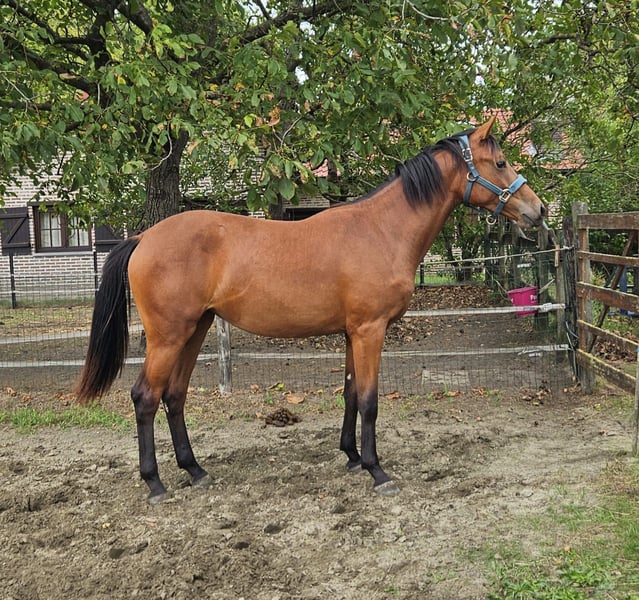 Ballerina van 't Hooidonkhof is a beautiful yearling BWP mare with 3 excellent gaits. She is a daughter of the dressage stallion Galliani Biolley, who was competed by Katrien Verreet up to Grand Prix level! Her mother, Kolibri's Twinkeling (Numero Uno), comes from the famous mare line 54 (Rhoxane). Ballerina has a great character and is very people-oriented. She is handled every day. She is being sold due to a lack of time. Ballerina is ready to move to a new home.