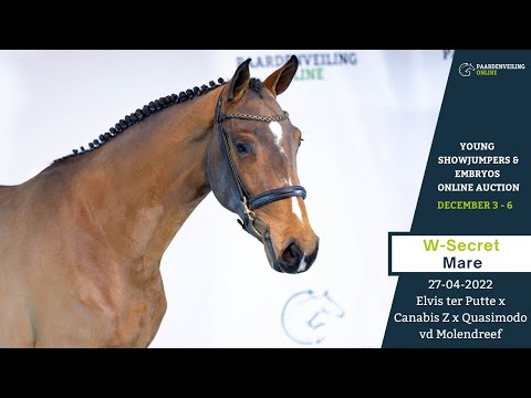 Sire Elvis ter Putte competed at the highest level with Karline De Brabander and is establishing himself as a top producer thanks to elite offspring such as Levis de Muze, Ikigai, Mosito van het Hellehof and Helwell du Chabus. In the pedigree of this promising W-Secret, he is paired with a proven Dutch damline. In combination with Grandorado TN, dam Dewi V has already produced the international 1.40m horse Love It, and she herself is a half-sister to the international 1.60m performer Abrisco V, ridden by Pål Flam. Granddam Tanja V is in turn a half-sister to the internationally 1.50m-level Laguna Seca with Peter Bulthuis, and further back this damline has also produced the international sport and breeding stallion Karandasj.
