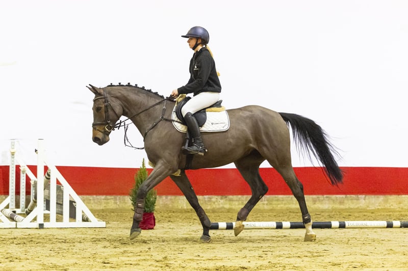 Vienna FG is a beautiful blood mare who will turn five in 2026 and has only just been saddle broken. She already rides very pleasantly and makes a positive impression in daily handling. She has blood, but in a good and workable way, and is very kind and cooperative. Over the jump, her power and good hind-leg technique stand out immediately. She is quick off the ground, shows plenty of scope and jumps with good commitment. Her technique is correct and she jumps with ease. For her age, she is developing remarkably well and already shows clear natural quality. Sire Pegase van ’t Ruytershof, by Comme Il Faut, competed internationally at 1.55 m level, with placings at CSI2* and CSI3* events. Pegase combines the scope and reflexes of Comme Il Faut with the strong Ruytershof damline and is known for passing on blood, mentality and quality. The damline is exceptionally strong and performance oriented. Dam Quinara (by Quidam de Revel) comes from a proven Holsteiner family and produced several sport horses, including Lassergut Balouboy (1.30 m) and Prins Cornet FG (1.35 m international). Granddam K-Tiziana produced the approved stallion Quadrillo (ZfdP, BWP) and sport horses such as Quintino GP (1.40 m) and Quipou de Hus (1.45 m). Further down the line, multiple horses competed at 1.30 m to 1.45 m level, confirming the reliability and sport strength of this family. Vienna FG is a young, recently saddle-broken mare with blood, a strong hind end and plenty of scope. An interesting prospect for the future, both for sport and breeding. This horse was previously auctioned, but as the buyer did not meet his obligations, the payment was never completed. The horse itself is exactly as described. Perhaps it’s no coincidence the previous buyer didn’t pay — this horse was simply meant for you!