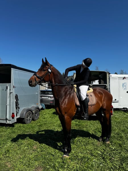 Schweren Herzens suche ich für meinen 9-jährigen belgischen Warmblut-Wallach Quaresco ein neues Zuhause. Aus zeitlichen Gründen und weil ich leider die Freude am Reitsport verloren habe, kann ich ihm nicht mehr die Beschäftigung bieten, die er verdient und braucht. Quaresco ist ein Pferd mit viel Herz und Charakter. Er braucht Geduld, Liebe und eine klare Führung, wenn man jedoch einmal sein Vertrauen gewonnen, macht er wirklich alles für einen. Im Umgang ist er brav und menschenbezogen, benötigt jedoch viel Aufmerksamkeit und jemanden, der ihm konsequent Grenzen aufzeigt. Er ist sehr charakterstark, weshalb ich mir einen Reiter/eine Reiterin wünsche, der/die motiviert, fair und gleichzeitig bestimmt mit ihm arbeitet. Gesundheitlich befindet sich Quaresco in einem guten Zustand. Er wird regelmässig physiotherapeutisch behandelt und ist fit für die Arbeit. Das einzige erwähnenswerte Manko ist ein Bockhuf hinten. Dieser wurde jedoch zweimal tierärztlich abgeklärt und schränkt ihn nicht nennenswert ein. Quaresco hat grosse Freude am Springen und zeigt ein gutes Grundpotenzial. Da ich aufgrund meiner Vergangenheit eher ängstlich bin, wurde er von mir nicht so viel gesprungen. Dennoch haben wir gemeinsam einige Sprünge gemacht und waren einmal auf einem Turnier. Ich habe jedoch gemerkt, dass Turniere nicht mein Ding sind. Quaresco ist unglaublich lieb und willig: Wenn man ihm den Weg zeigt, möchte er immer sicher auf die andere Seite. Auch in der Dressur arbeitet er motiviert und lernwillig mit. Zu Beginn braucht er etwas Ansporn, danach lässt er sich sehr gut reiten und zeigt Freude an der Arbeit. Beim Ausreiten ist Quaresco in seinem Element – ob alleine oder in der Gruppe. Er ist in allen Gangarten zuverlässig, bleibt in den meisten Situationen ruhig und cool. Wenn ihm etwas suspekt erscheint, bleibt er im Normalfall stehen und man kann es ihm in Ruhe zeigen. Es handelt sich um keinen Notverkauf. Quaresco zieht nur in ein neues Zuhause, wenn es zu 100 % passt. Der Preis ist verhandelbar, da mir ein passendes und liebevolles Zuhause wichtiger ist. Bei Interesse oder weiteren Fragen dürfen Sie sich jederzeit gerne bei mir auf WhatsApp (+41 79 908 28 72) melden.