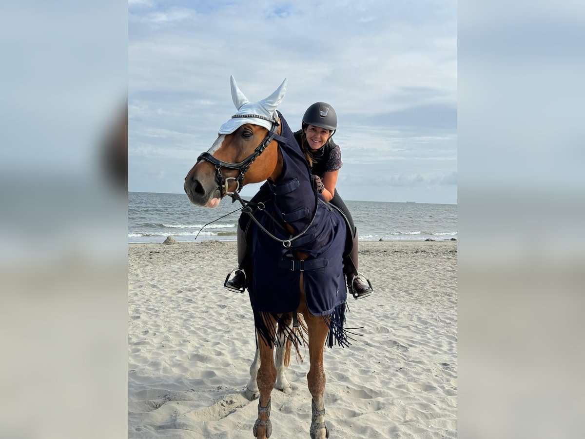 Oreo is a willing and versatile horse with many talents. His favorite activity by far is jumping a course, which he does with great enthusiasm and energy. The reason for selling him is that I cannot provide him with the environment he needs. Therefore, he is looking for a rider with the ambition to develop in jumping. I am seeking a top-quality home for Oreo, as he truly deserves it. In addition to jumping, Oreo is suitable for trail riding; going alone or in a group is no problem. He confidently loads onto the trailer and is easy to handle alone. He has often been on unfamiliar terrain and has recently started WE lessons, which he takes to very well. Videos of his jumping can be provided upon request. When purchased in 2024, Oreo will be sold with a veterinary health certificate, with no remarks. As mentioned, I cannot offer Oreo what he needs, which makes the difficult decision to sell him necessary. P.S. The farrier is always happy to trim Oreo, as he is incredibly well-behaved.