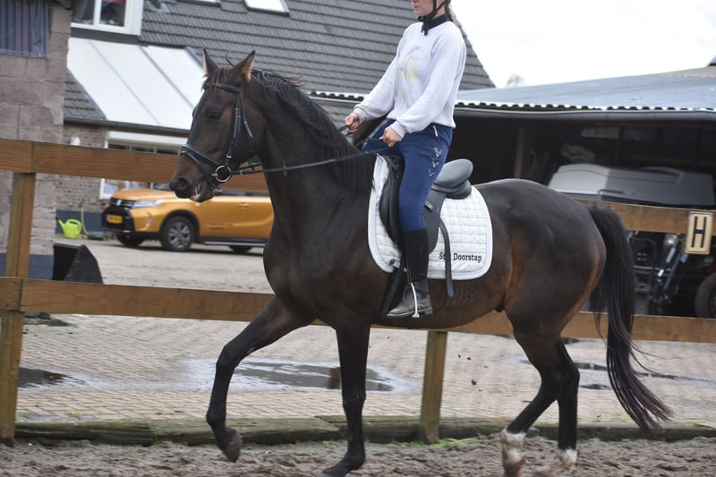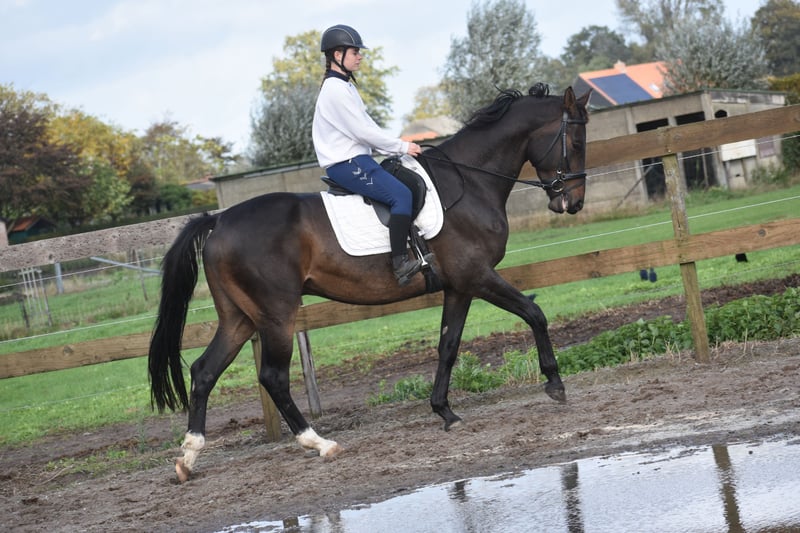Conoce a Valesco de la Melane. Directamente del criador, tuvimos la oportunidad de adquirirlo, junto con su compañero de establo, Voltaire de la Melane. ¡Qué joya! Un hermoso potro de 4,5 años, de color negro-marrón, de aproximadamente 1,68 m, con una ascendencia impresionante: Lavillion x Akribori x Ulft. Una combinación perfecta tanto para doma como para salto. Valesco es realmente un caballo encantador. En el establo, con su presencia carismática, atrae todas las miradas y disfruta mucho de un mimos. Bajo la silla, demuestra su entusiasmo y carácter equilibrado. Es muy agradable de montar y transmite una sensación segura y suave en la mano. Ha sido sometido a radiografías y revisiones clínicas, con resultado favorable tanto en las patas como en la espalda y el cuello. Gracias a su talento y versatilidad, Valesco puede encarar diferentes disciplinas. Es un caballo con un gran potencial, apto tanto para competición (doma y salto) como para ocio. Ha sido bien entrenado para el tráfico y el transporte en remolque, y es muy sociable. Está libre de defectos (en el establo). Valesco goza de buena salud y se mueve con mucha cadencia, equilibrio y amplitud. Precio: 9.750 € (incluye silla de marca y brida completas).